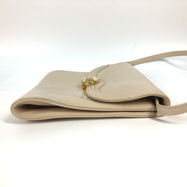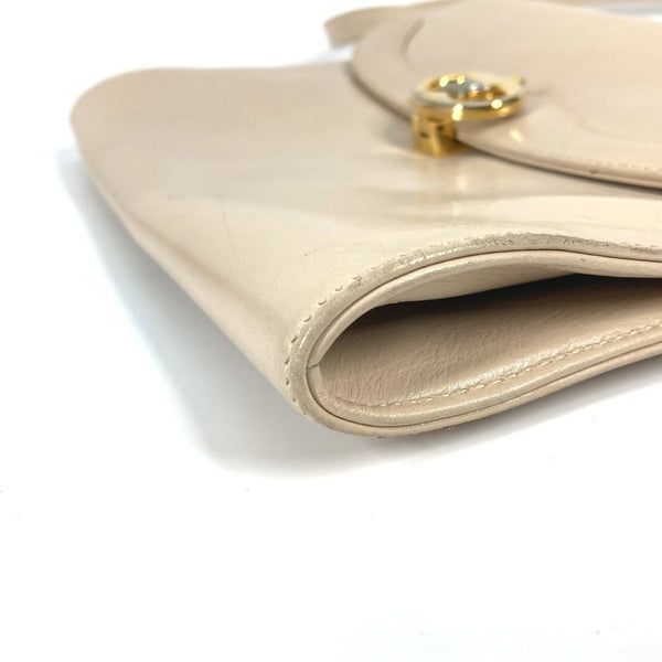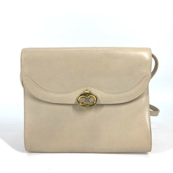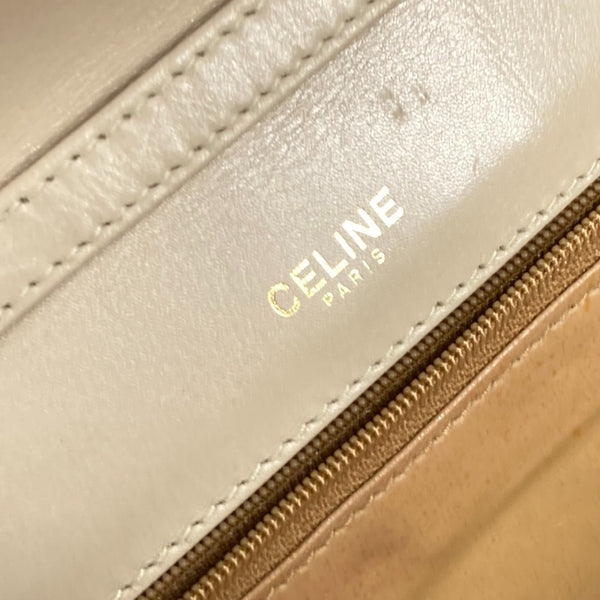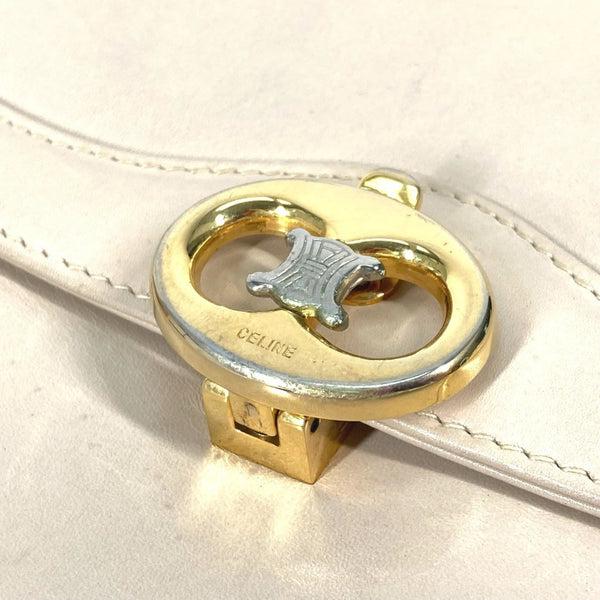CELINE Triomphe Pochette Vintage 2-Way Clutch/Shoulder Bag in Beige Leather for Women