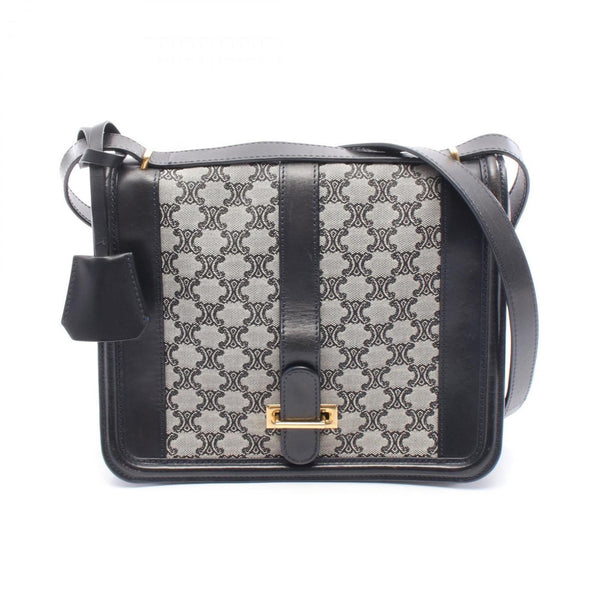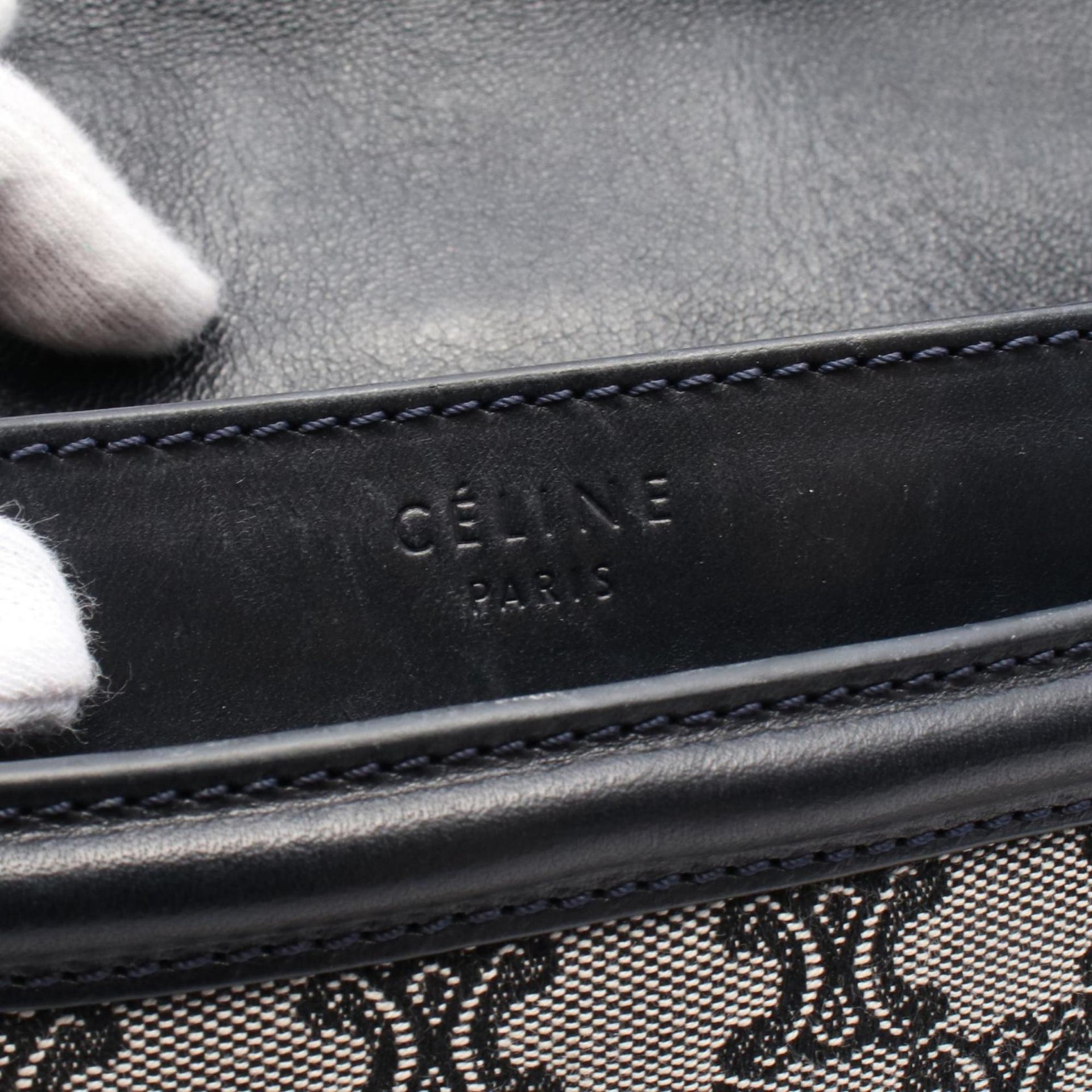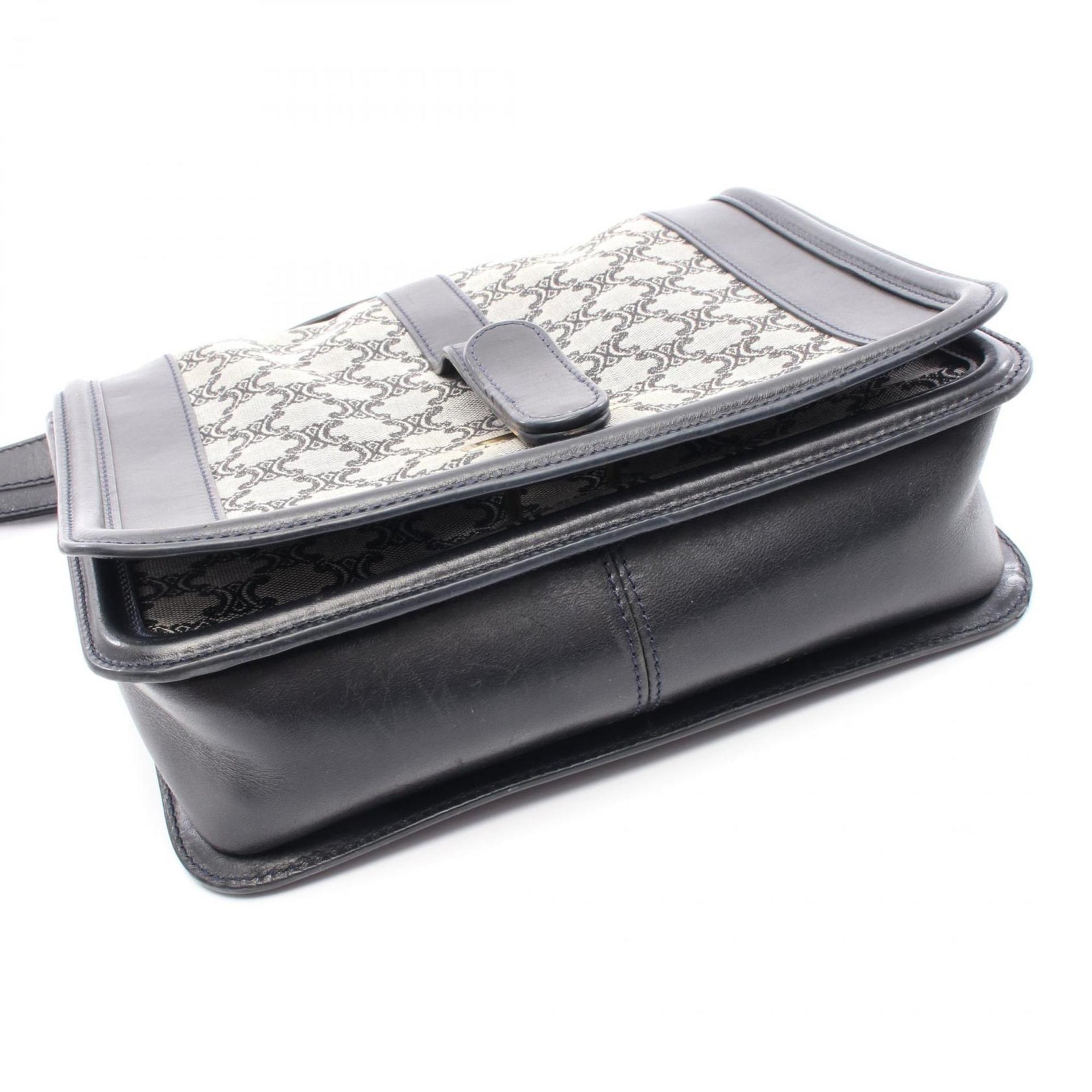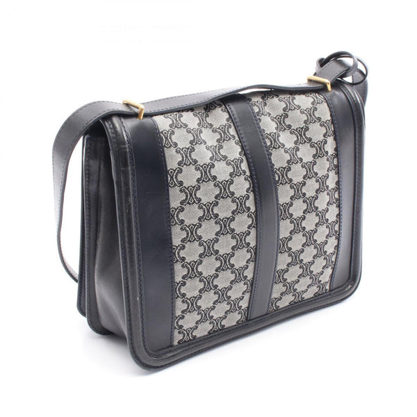 CELINE Triomphe Shoulder Bag Canvas Leather Women\'s Navy Grey