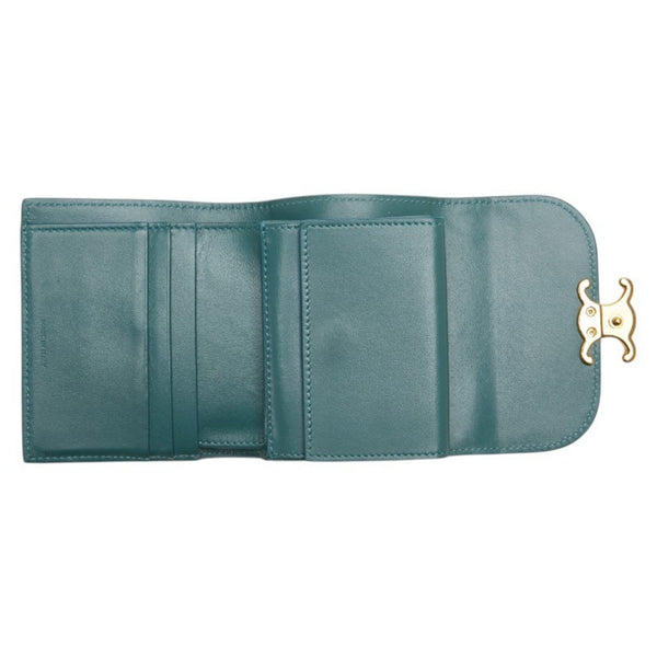 Celine Triomphe Small Bifold Wallet in Green and Blue Leather for Women