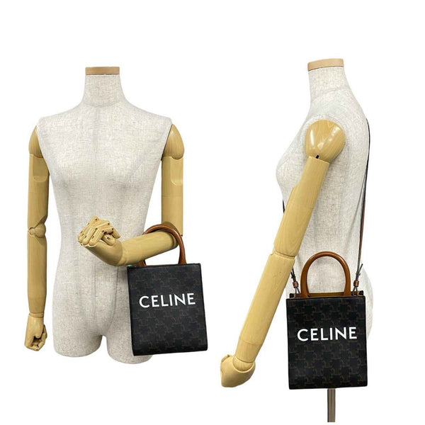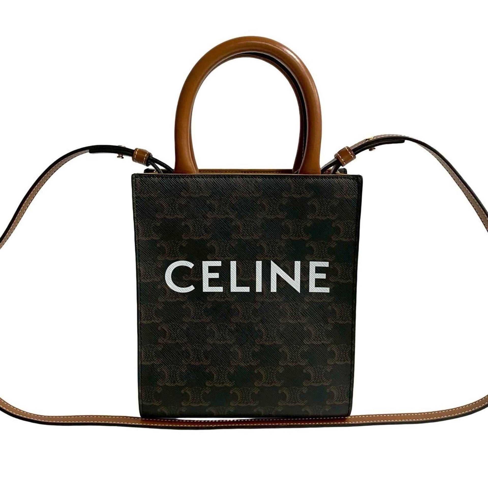 CELINE Vertical Cabas Mini Leather Handbag, Tote Bag, Shoulder Brown, 57299
