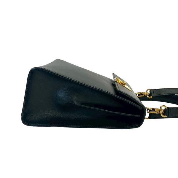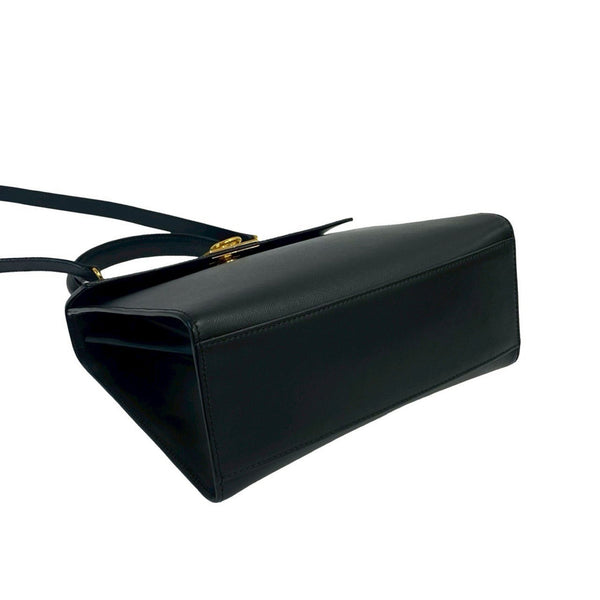 CELINE Vintage Logo Ring Hardware Leather 2-Way Handbag/Shoulder Bag Black 964-6
