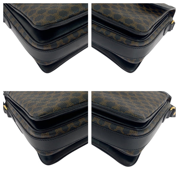 CELINE Vintage Macadam Black Dark Brown Gold Hardware Shoulder Bag Pochette Women\'s