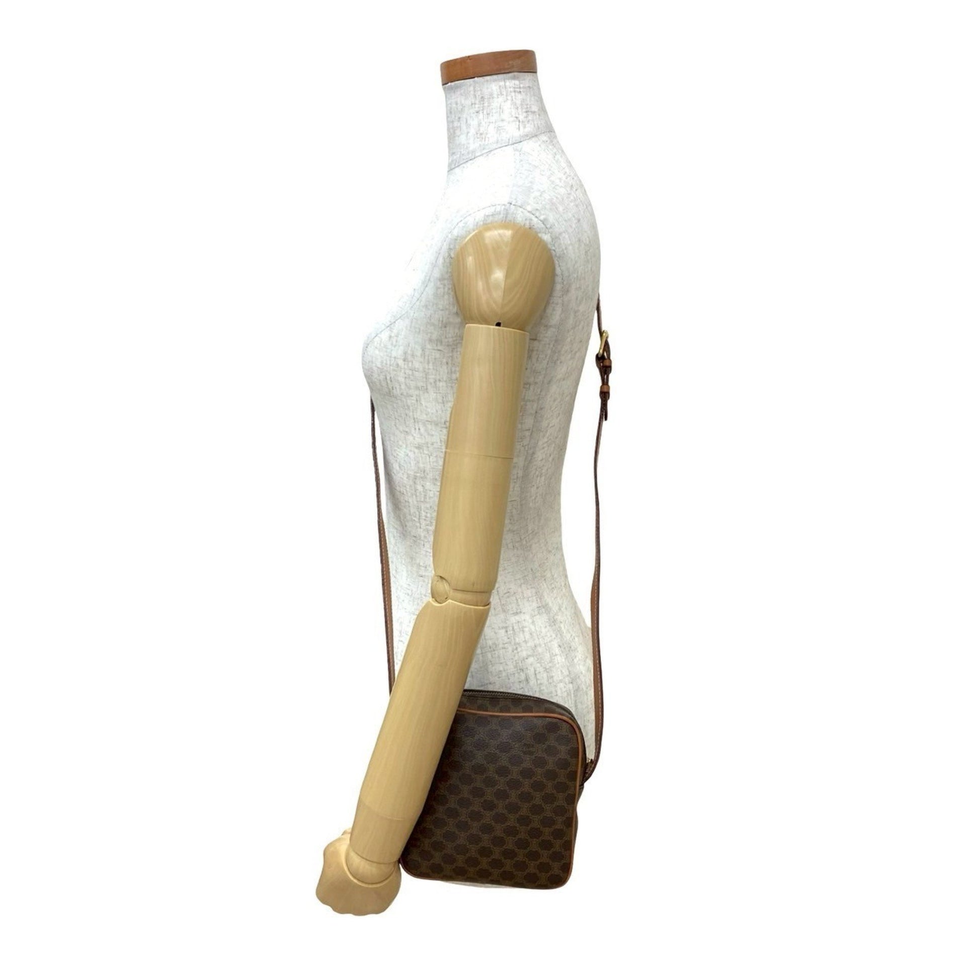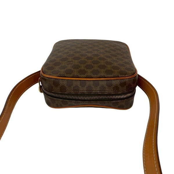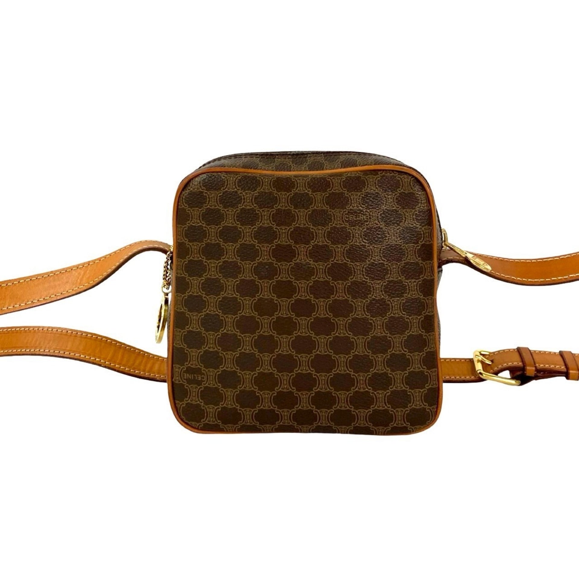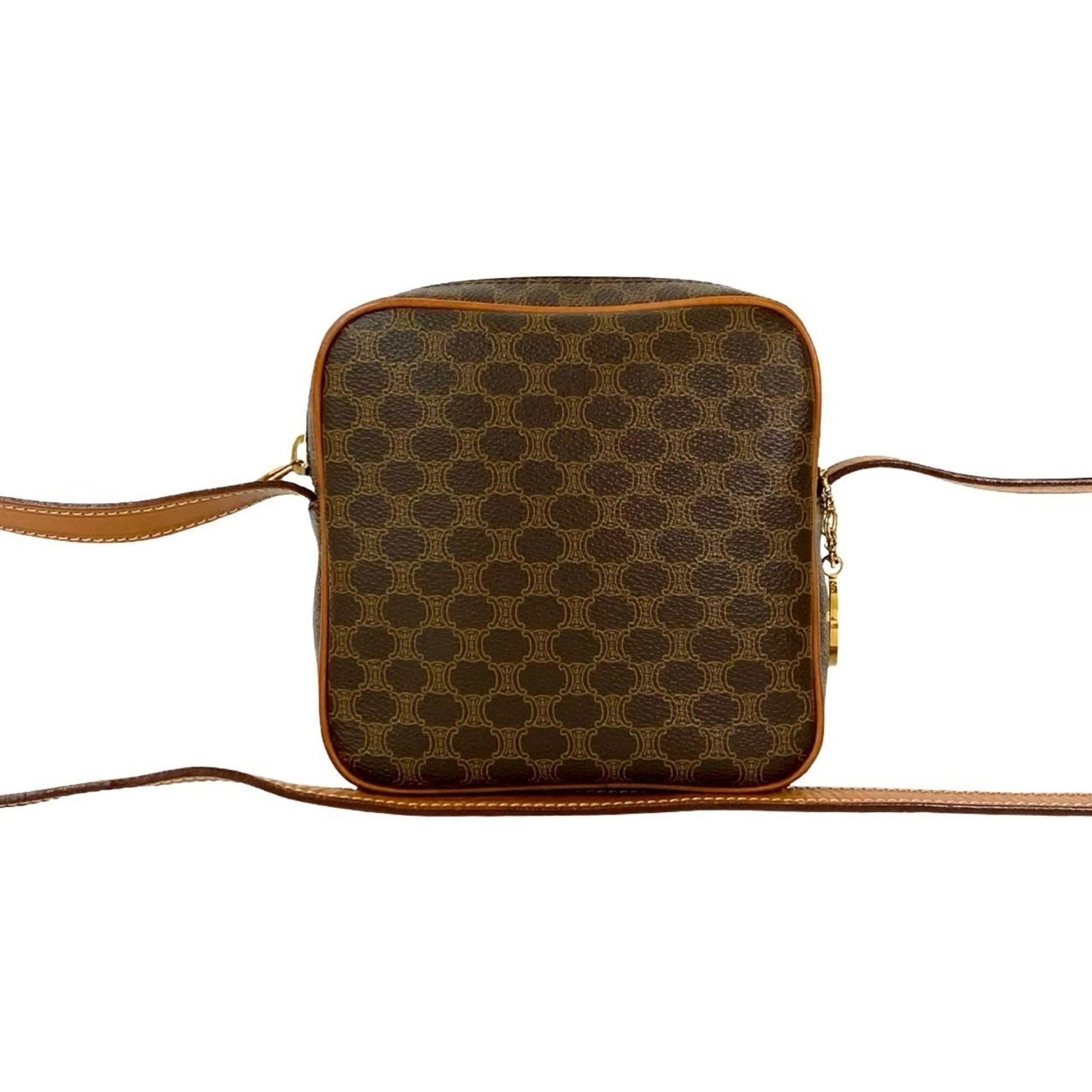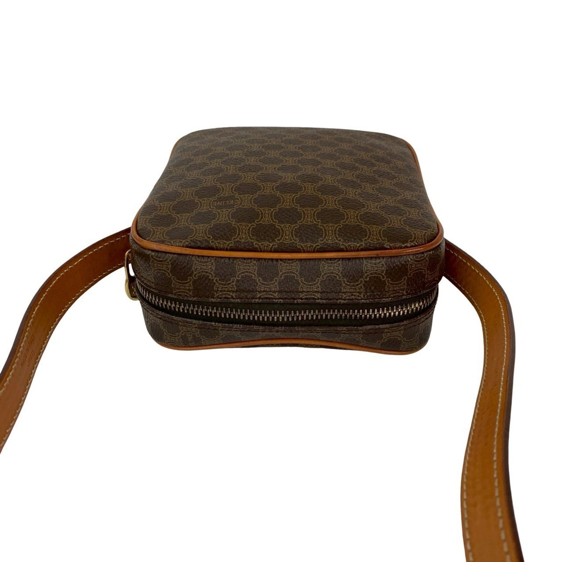 CELINE Vintage Macadam Blason Triomphe Pattern Circle Logo Metal Hardware Leather Mini Shoulder Bag Brown 14733