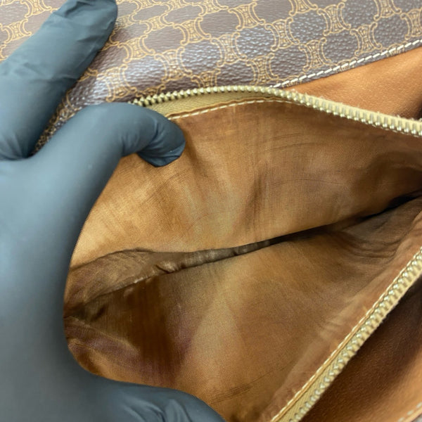 CELINE Vintage Macadam Blason with Triomphe Logo Leather Shoulder Bag/Pochette in Brown (48380)