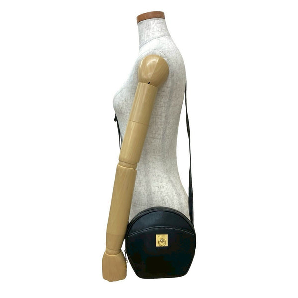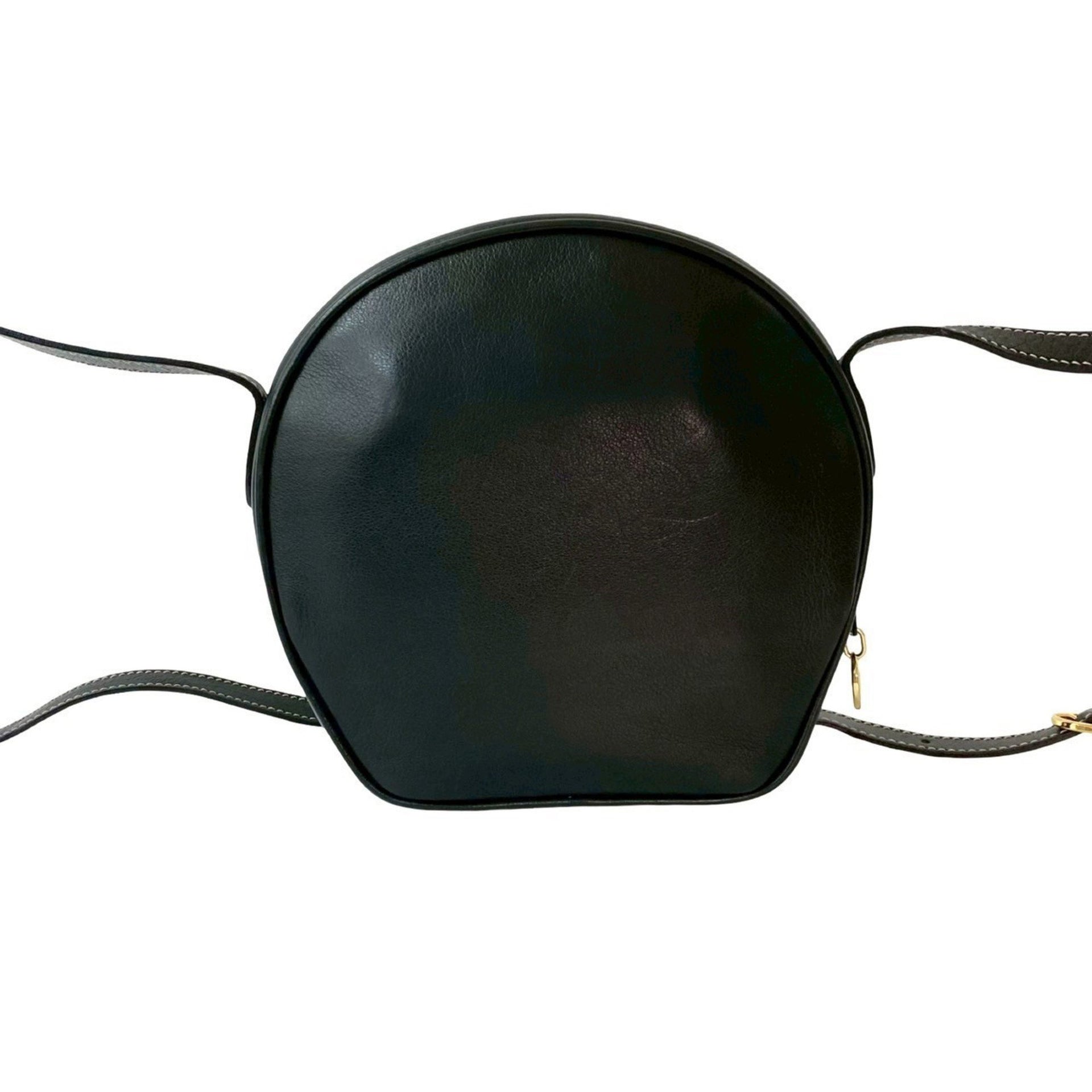 CELINE Vintage Ring Clasp Logo Engraved Leather Mini Shoulder Bag Pochette Black 15855