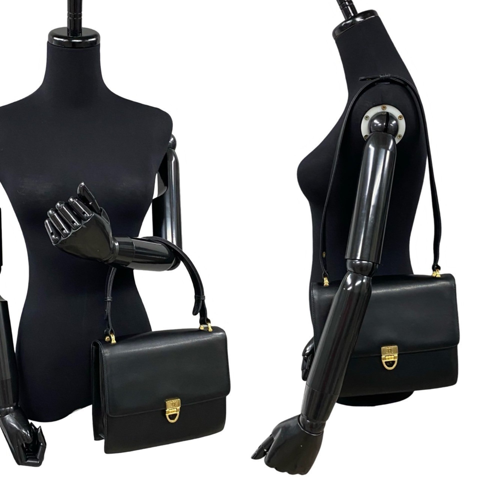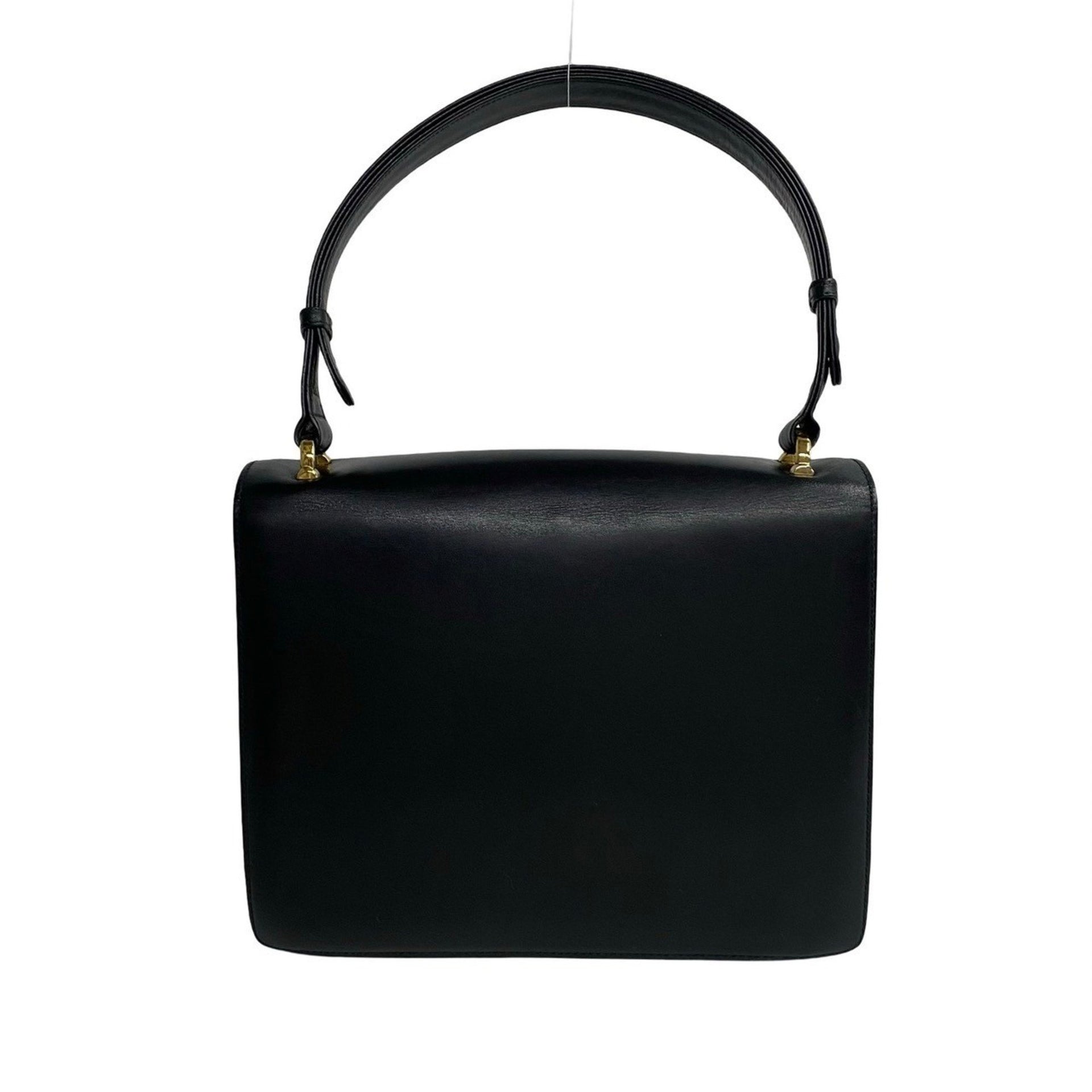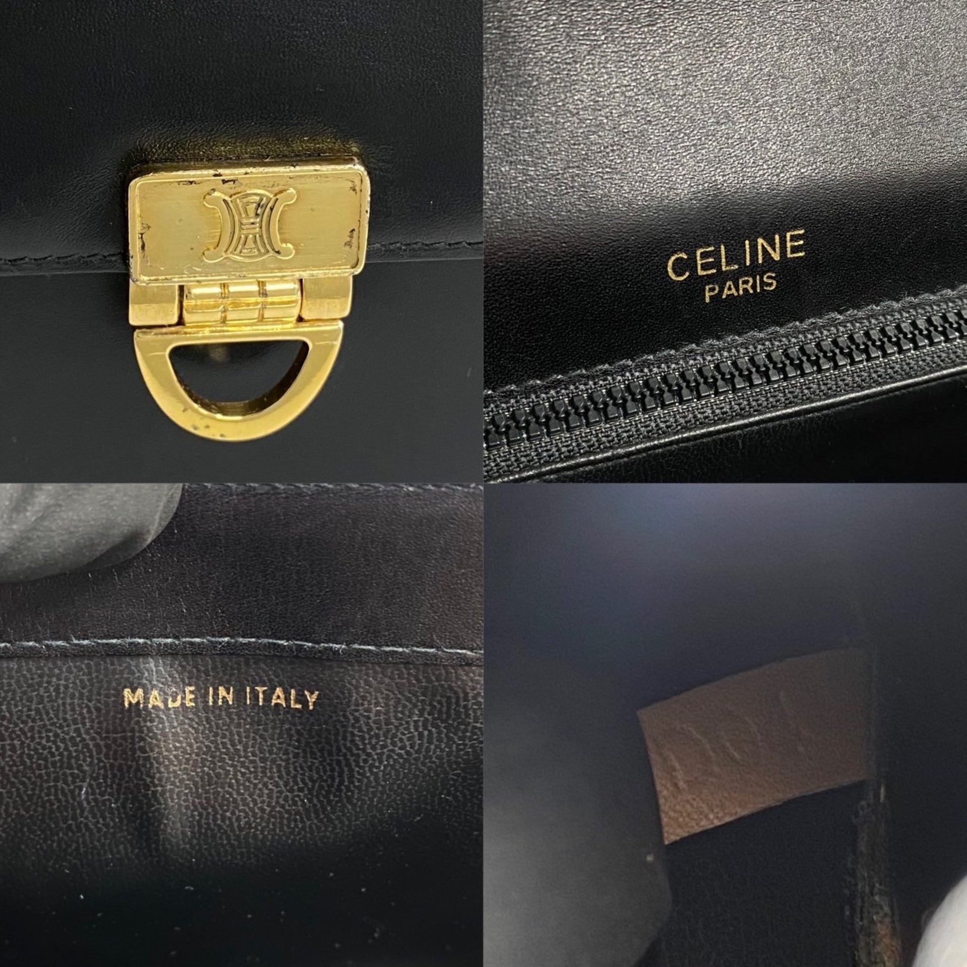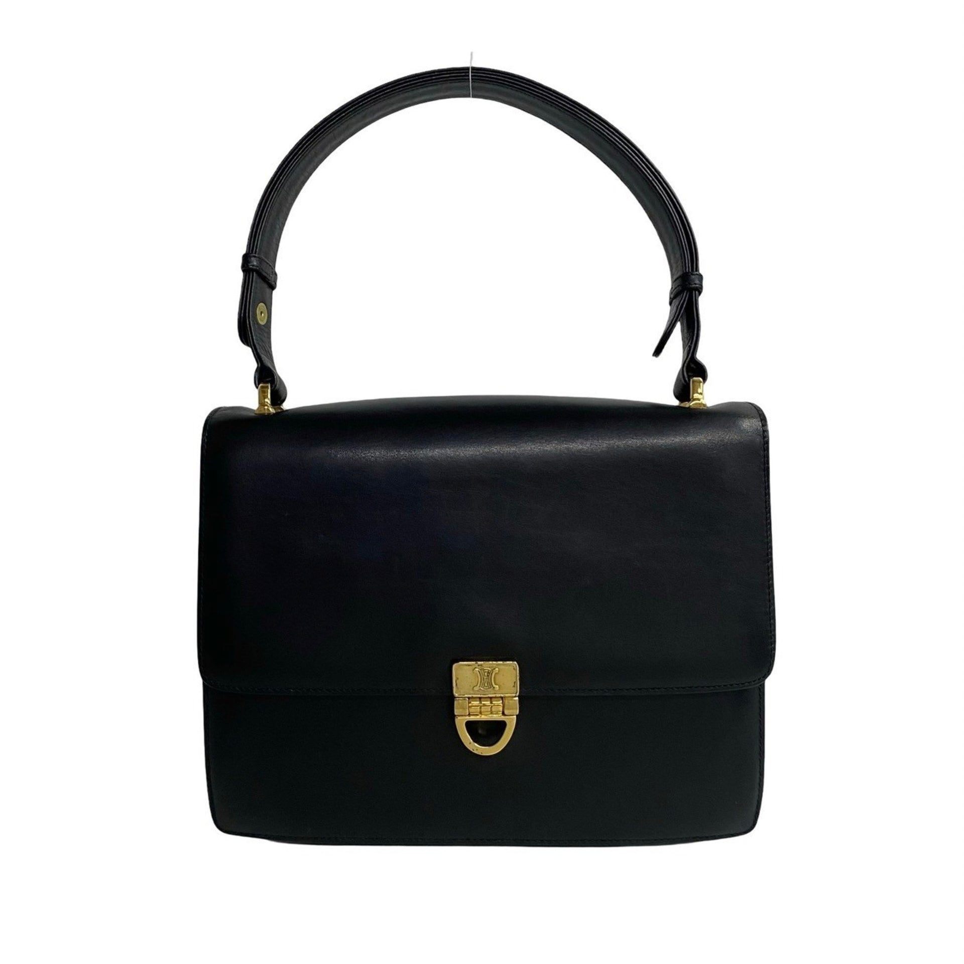 CELINE Vintage Triomphe Logo Hardware Calfskin Leather 2-Way Handbag/Shoulder Bag, Black, 28613