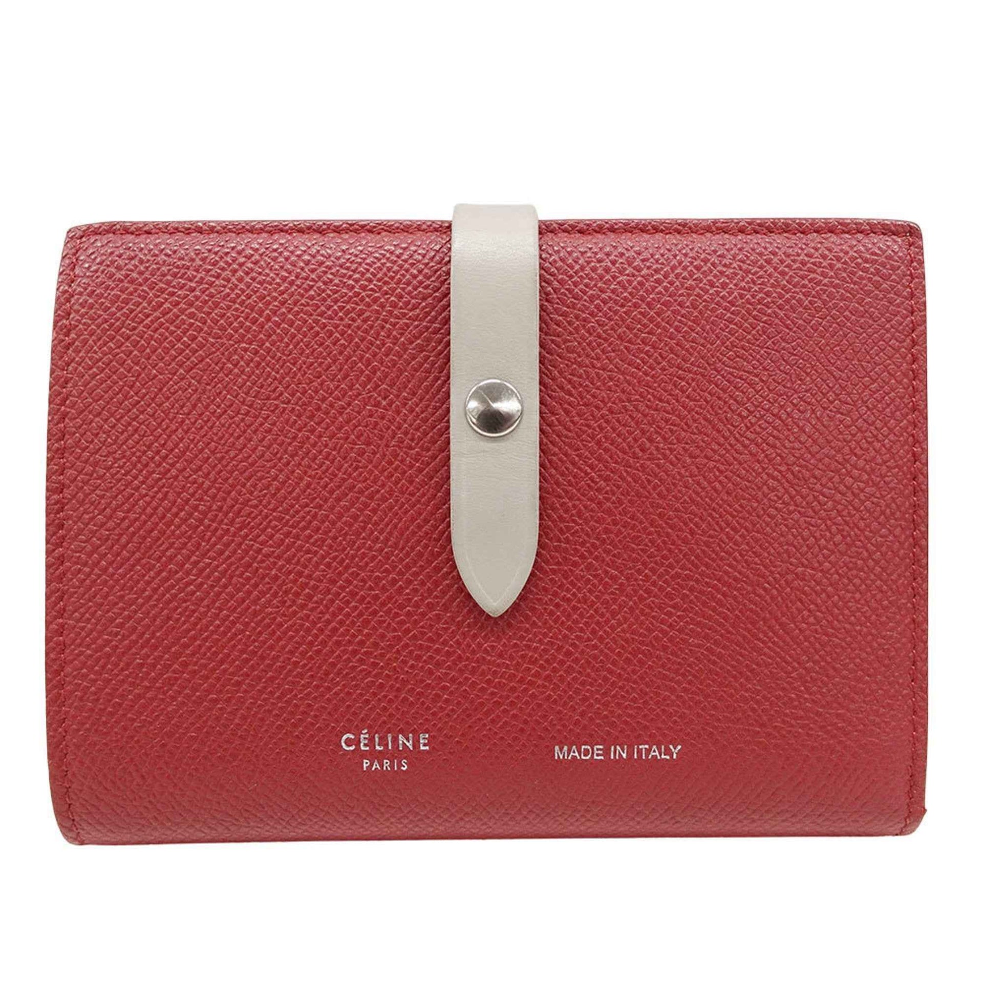 Celine Women\'s Leather Bi-fold Wallet with Medium Strap, Multi-Function, Red