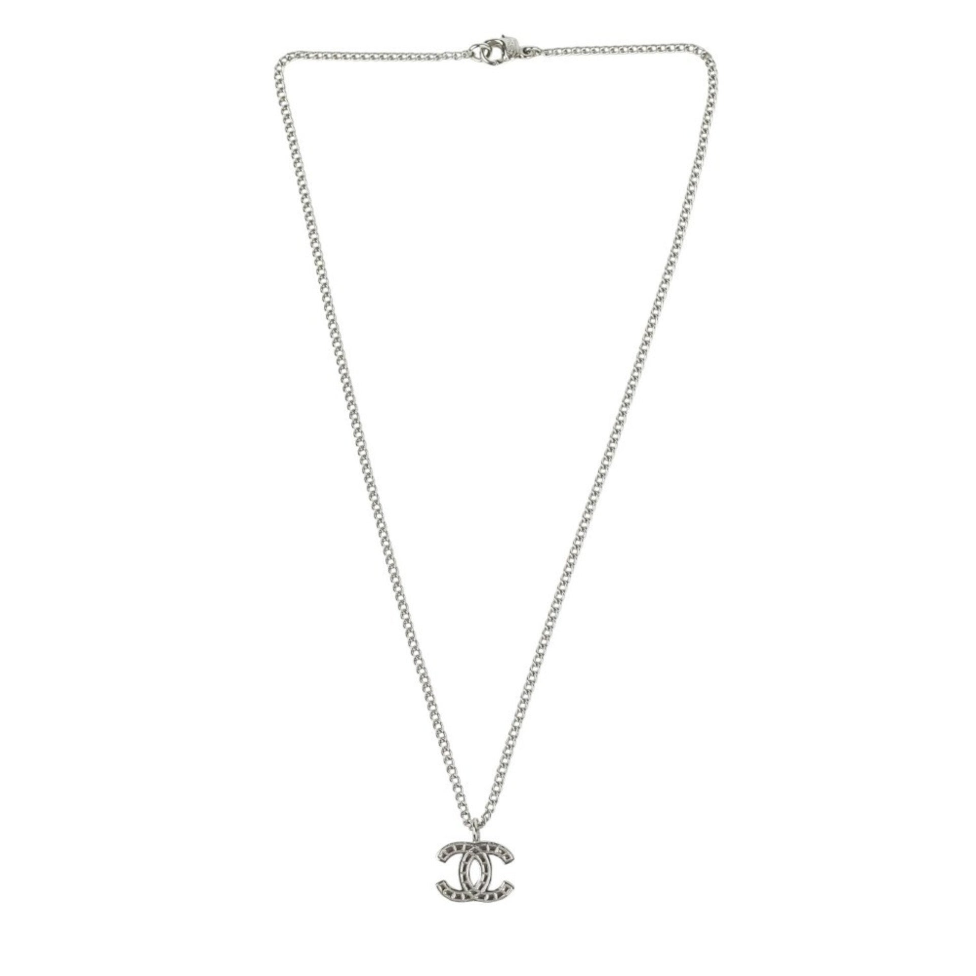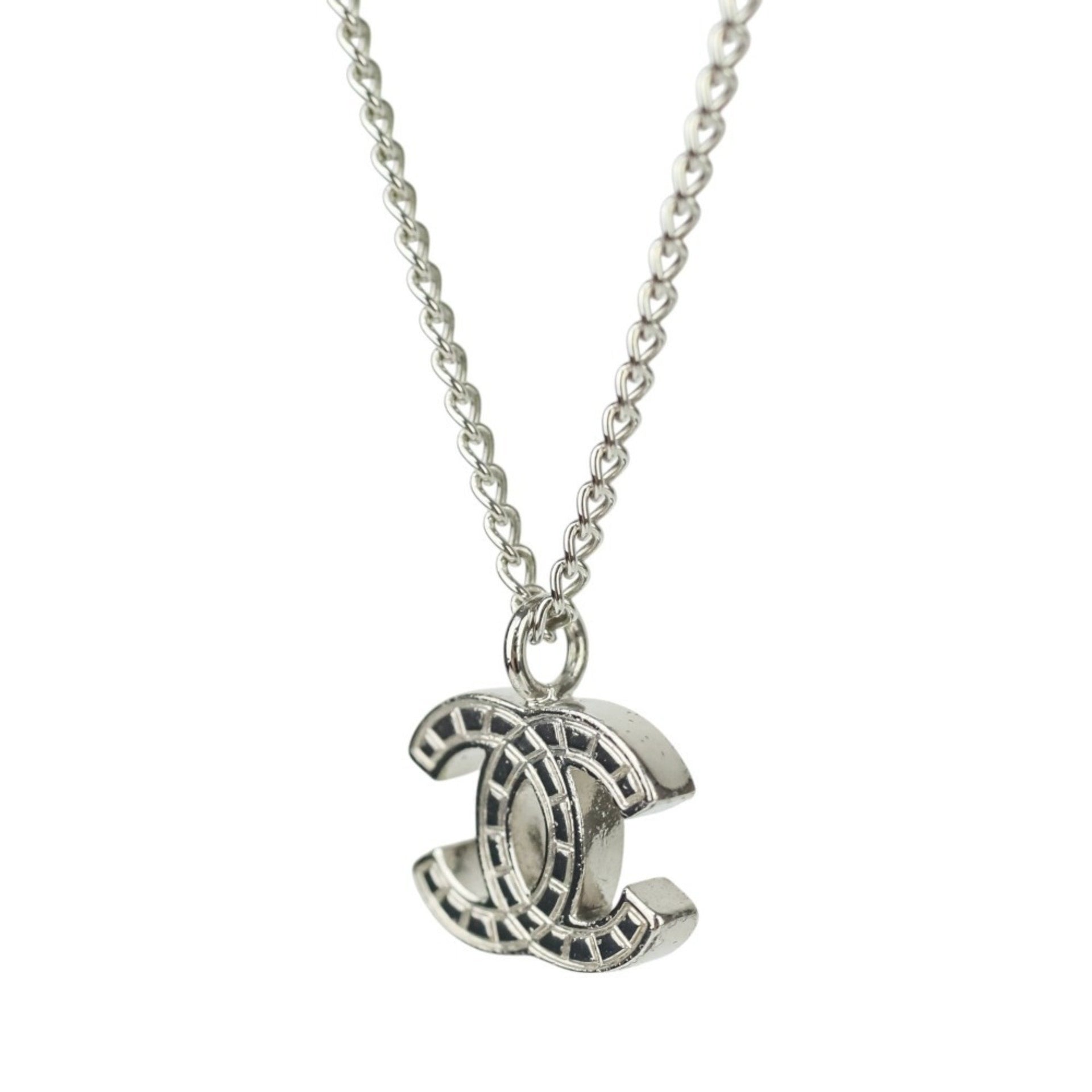 CHANEL 05V Coco Mark Necklace Pendant Silver Color Women\'s