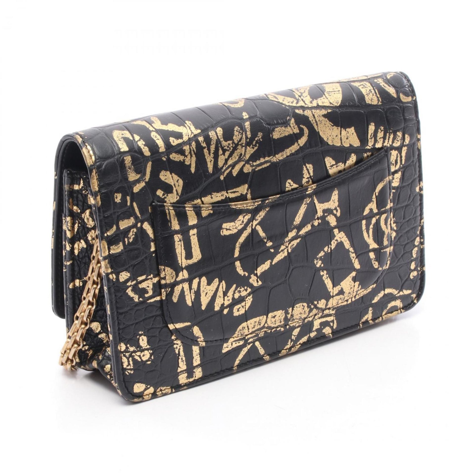 CHANEL 2.55 Shoulder Bag, Leather, Women\'s, Black and Gold, A70328