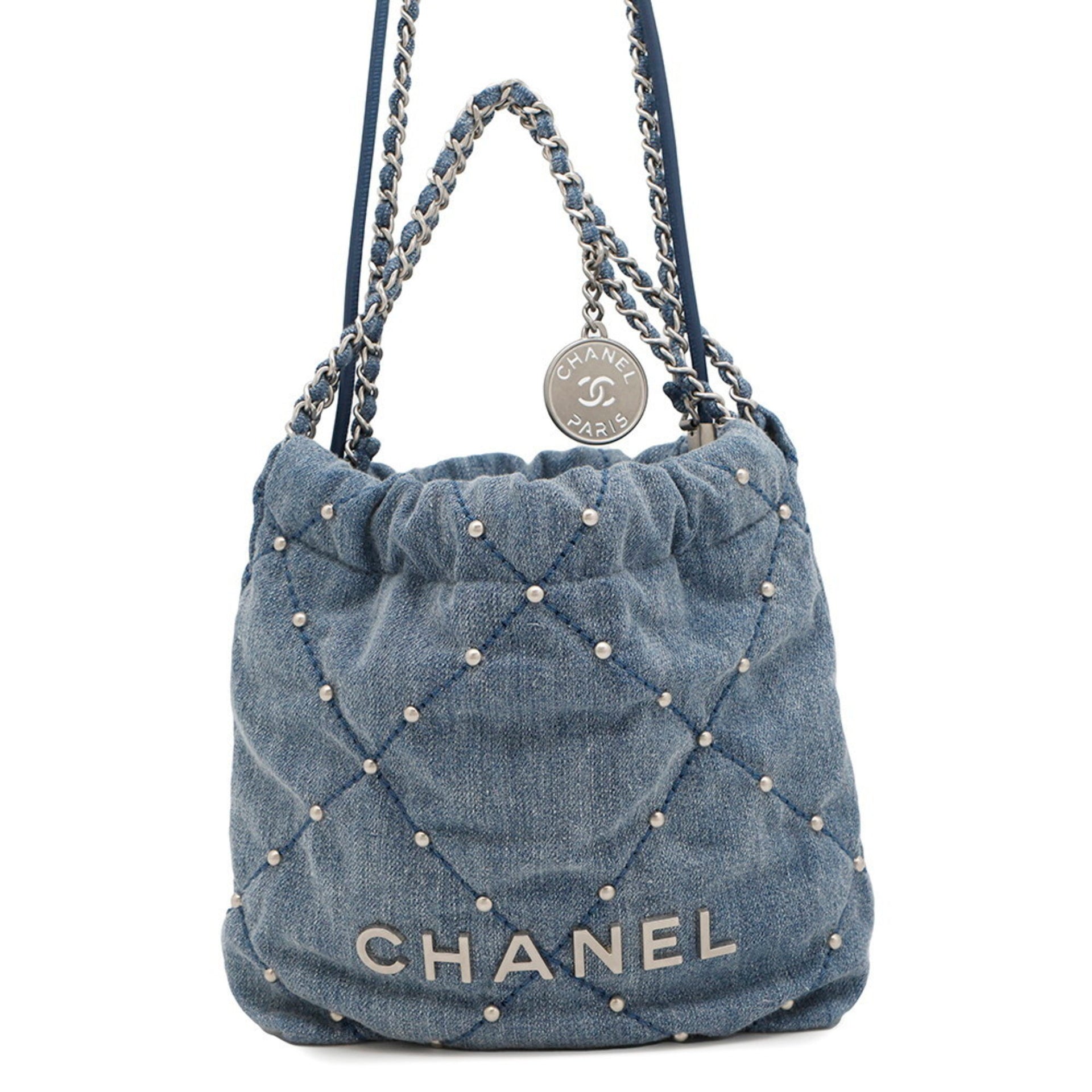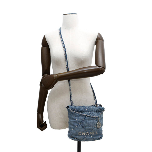 CHANEL 22 Mini Coco Mark Denim Handbag AS3980 2-way