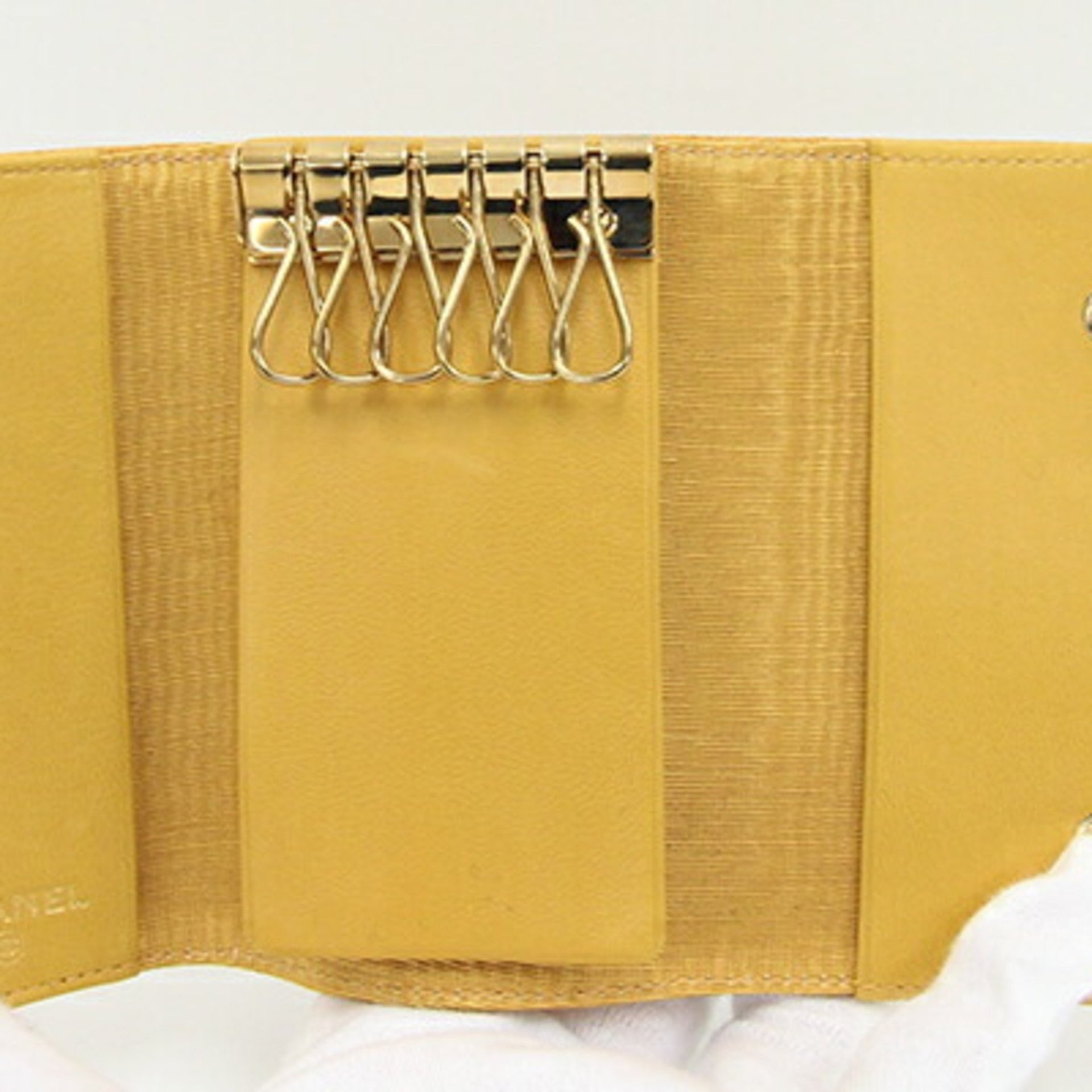 Chanel 6-ring key case with Coco Mark A13502 Yellow Caviar skin Keys Women\'s CHANEL