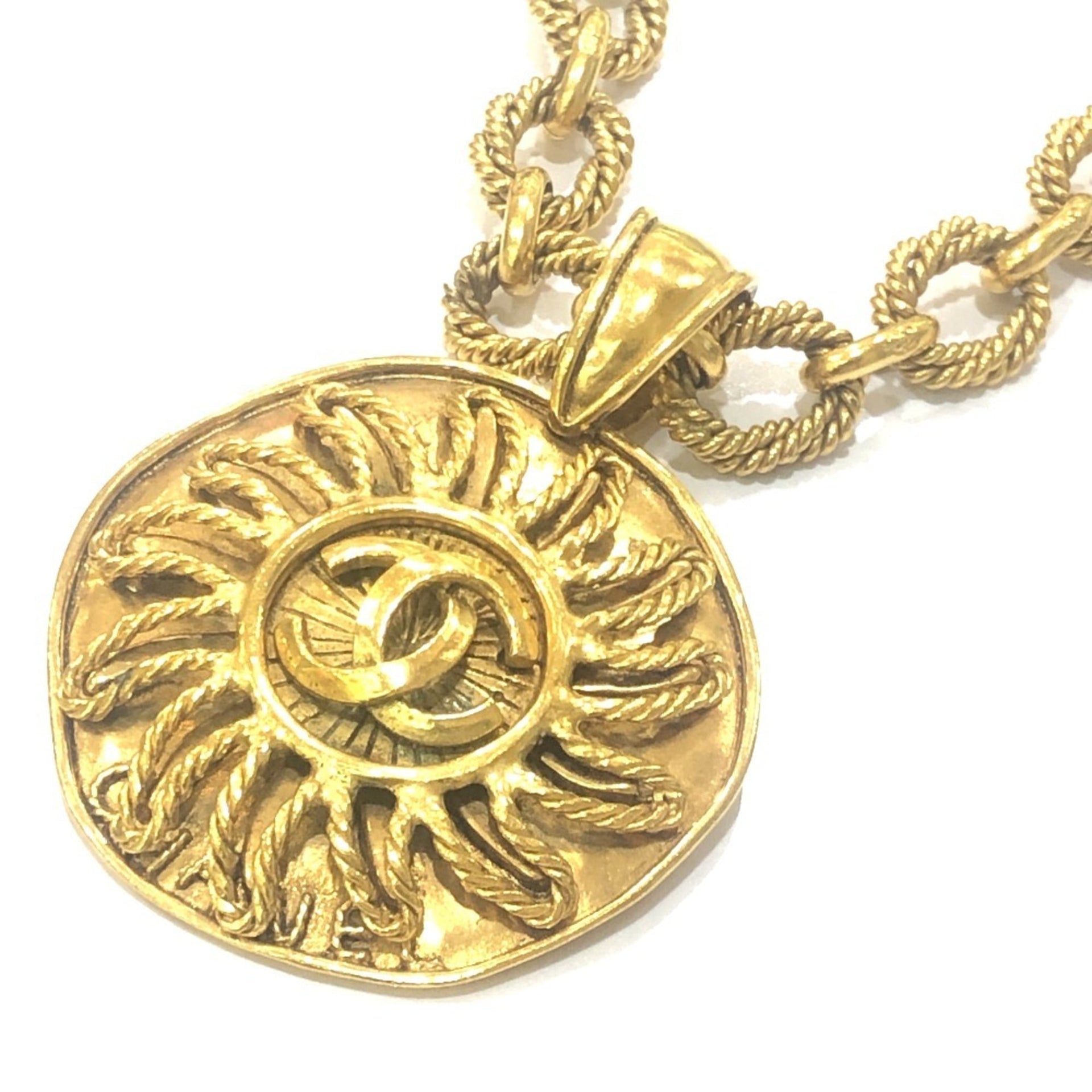 CHANEL 94A Coco Mark Sun Motif Chain Vintage Necklace GP Women\'s Gold