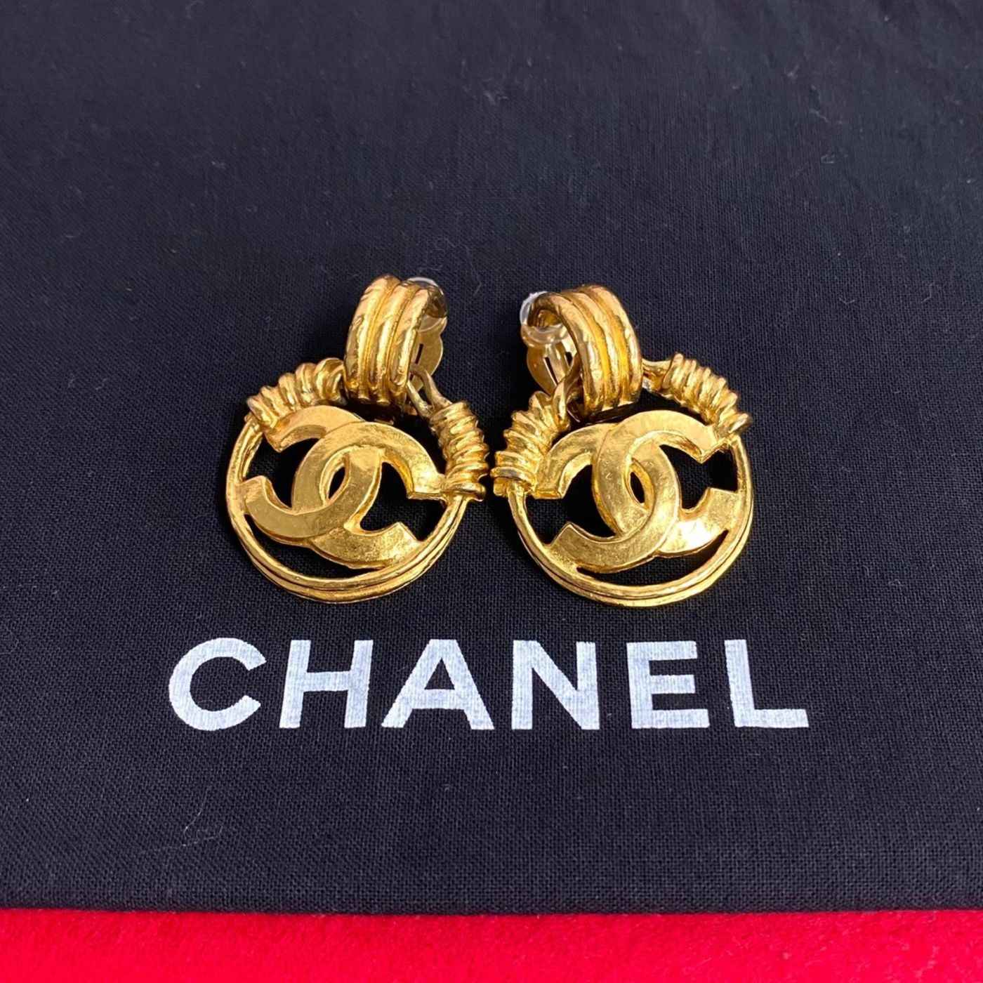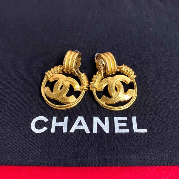 CHANEL 94P engraved Coco mark metal fittings GP earrings for women 34280