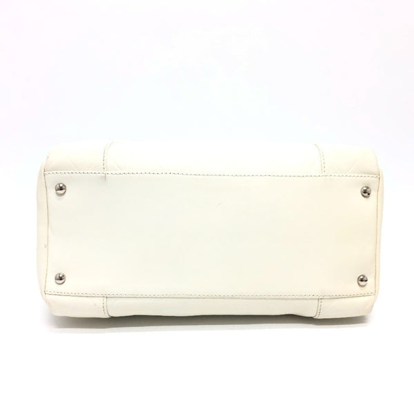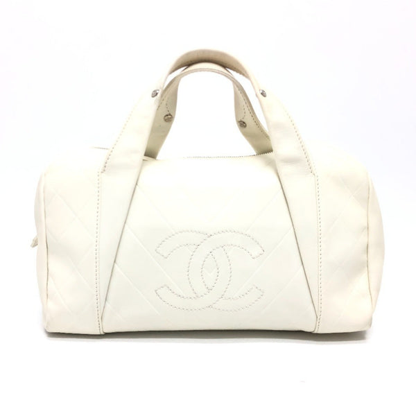 CHANEL A30899 CC Coco Mark Chevron V-Stitch Handbag Boston Bag in Calf Leather, White