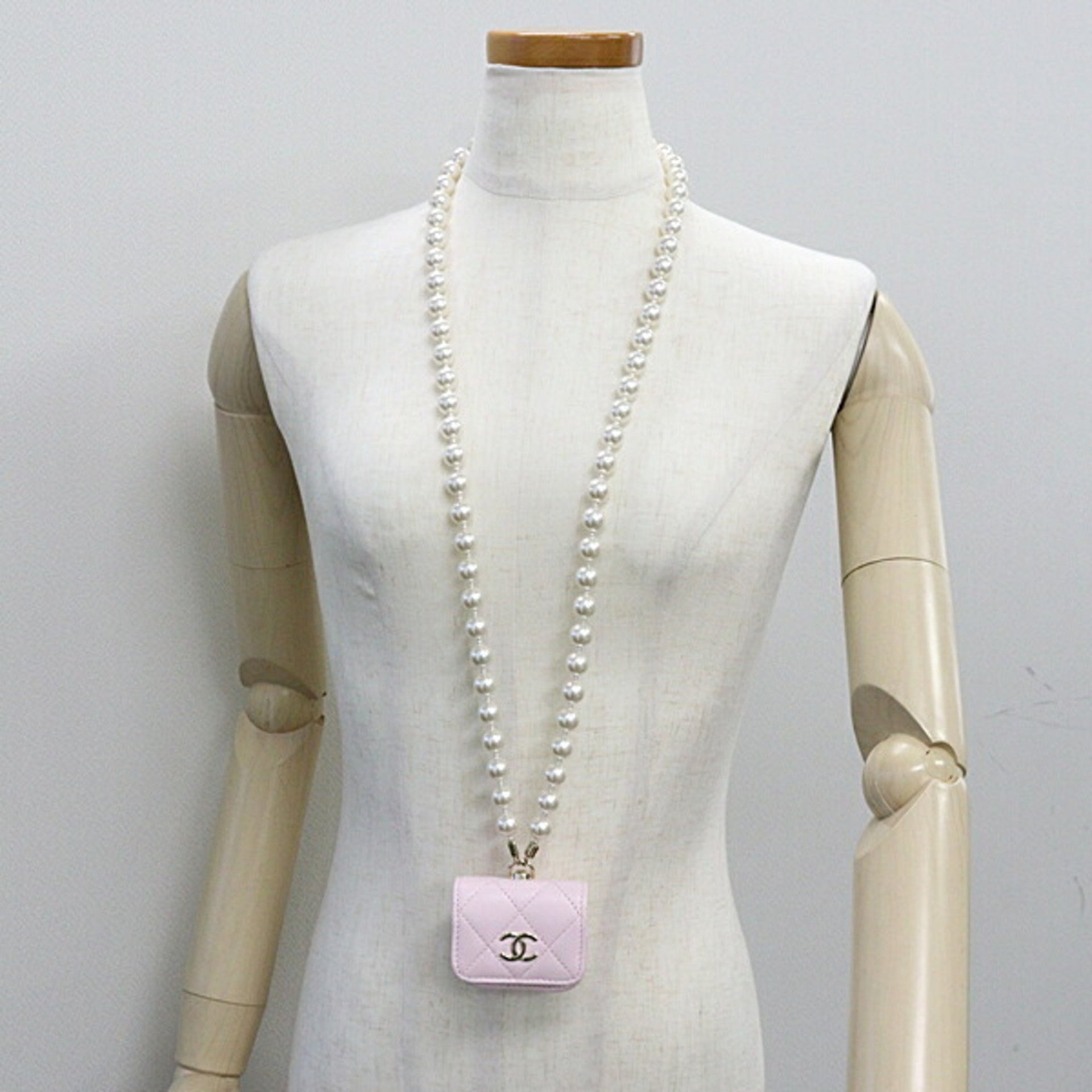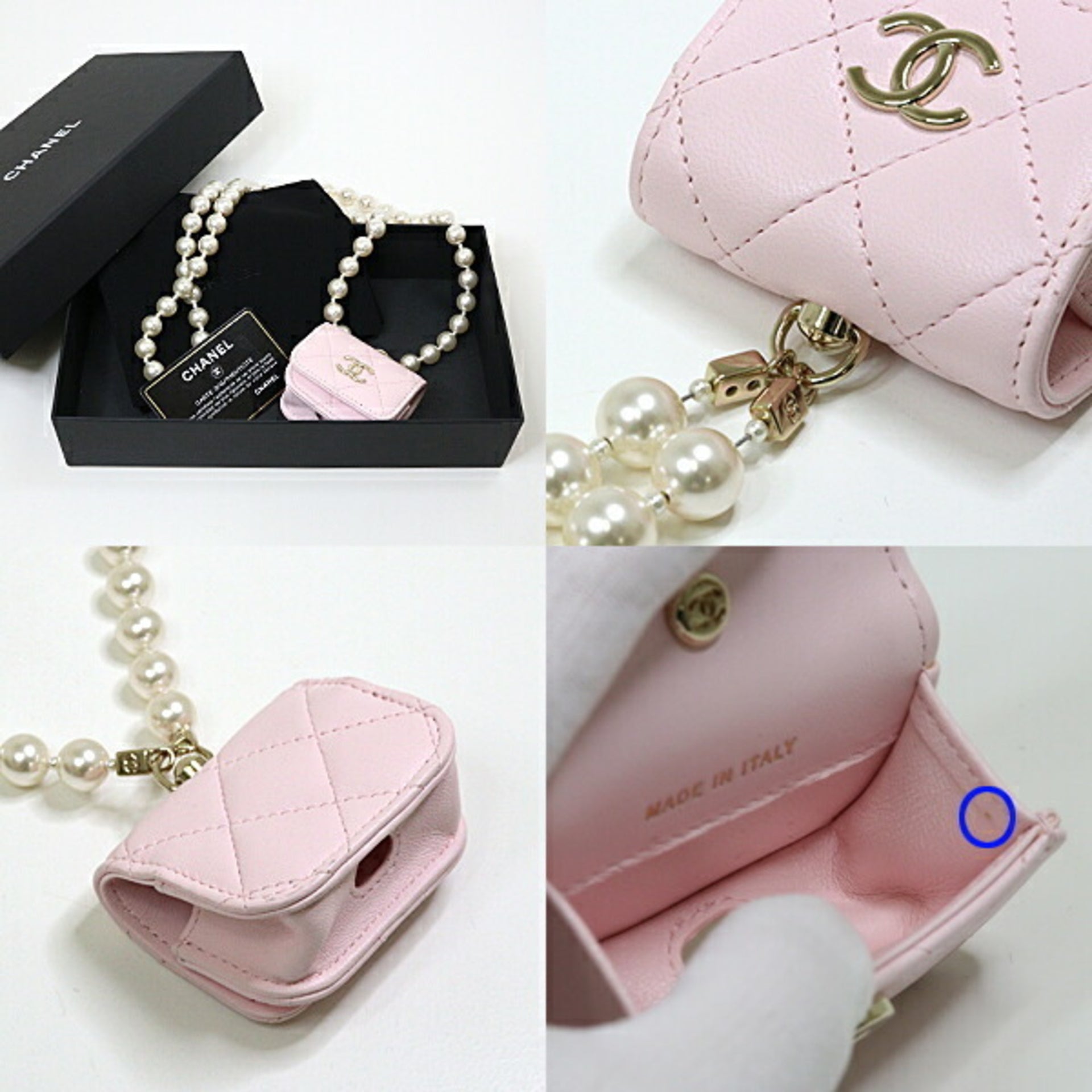 CHANEL Airpods Case Pink Faux Pearl Lambskin