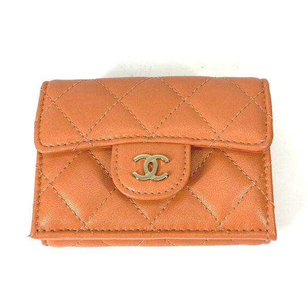CHANEL AP0230 CC Coco Mark Matelasse Quilted Compact Wallet, Tri-fold Lambskin, Women\'s, Orange