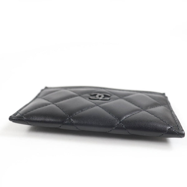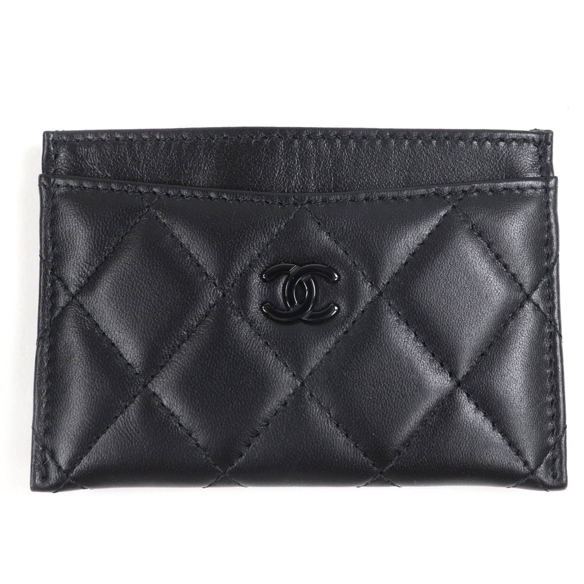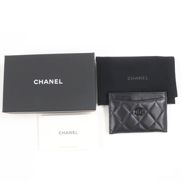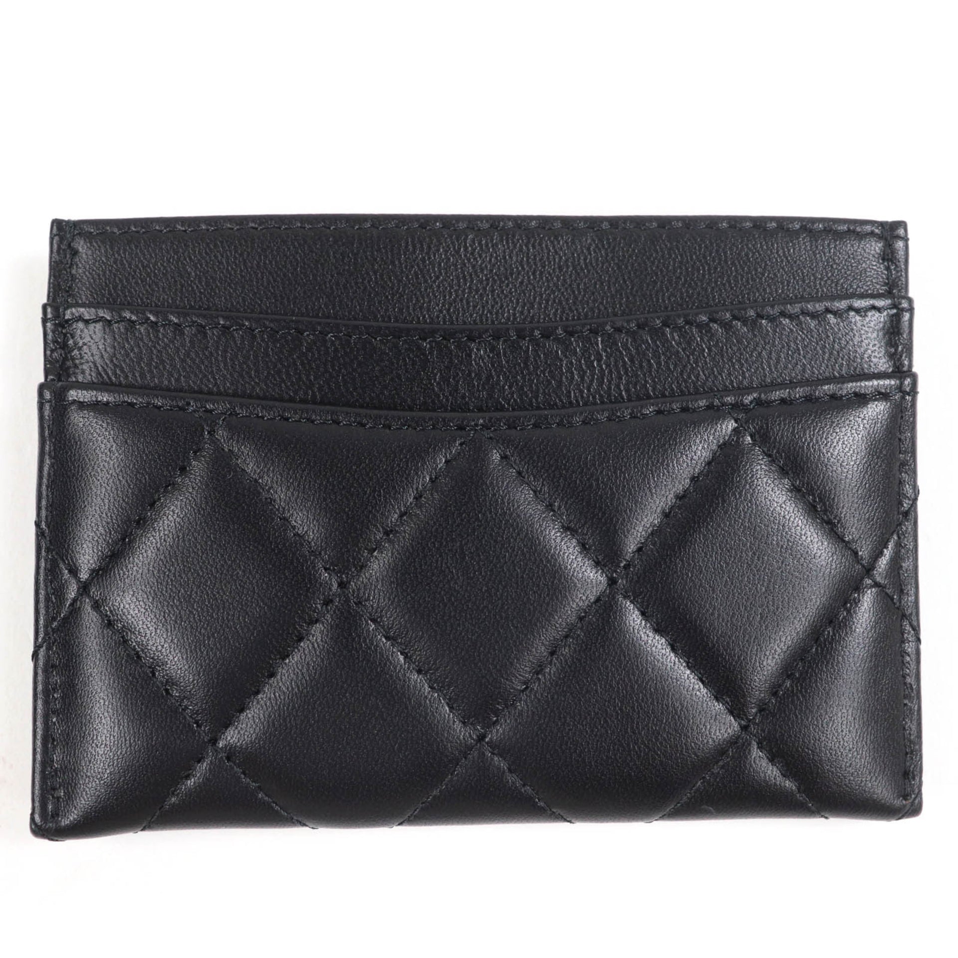 CHANEL AP4472 Lambskin Matelasse Coco Mark Business Card Case, Black, Black Hardware, Box and Dust Bag Included, Made in Italy, Women\'s
