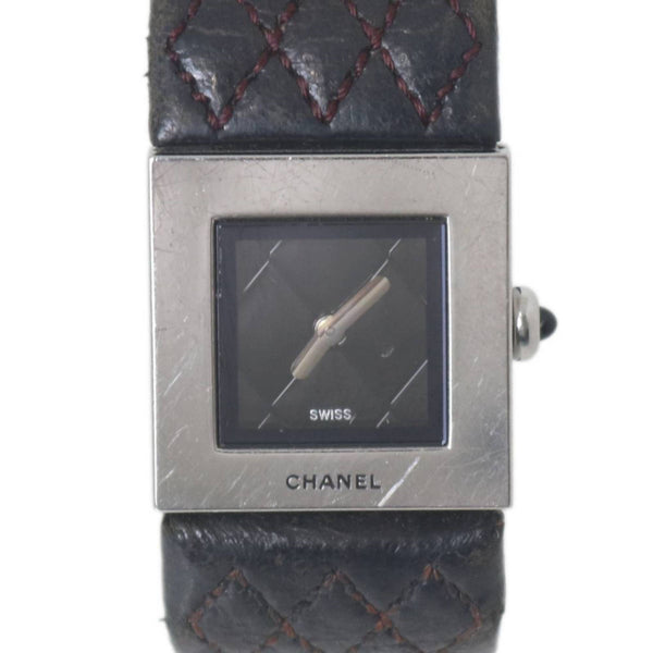 CHANEL Ashier Ladies Quartz Watch Matelasse Silver x Black ES
