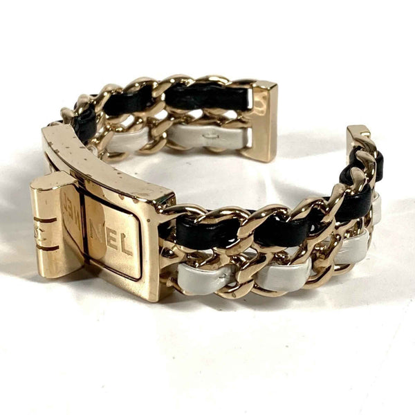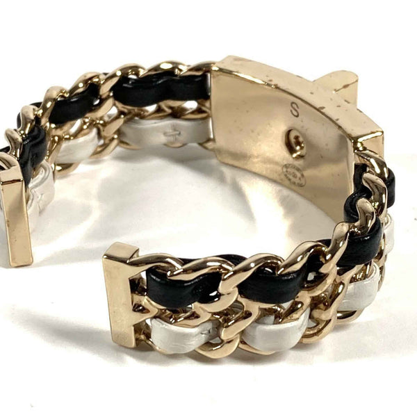 CHANEL B22A CC Logo Coco Mark Double Chain Bracelet, Accessory, Jewelry, Bangle, Metal, Leather, Women\'s, Black