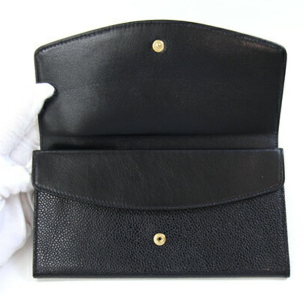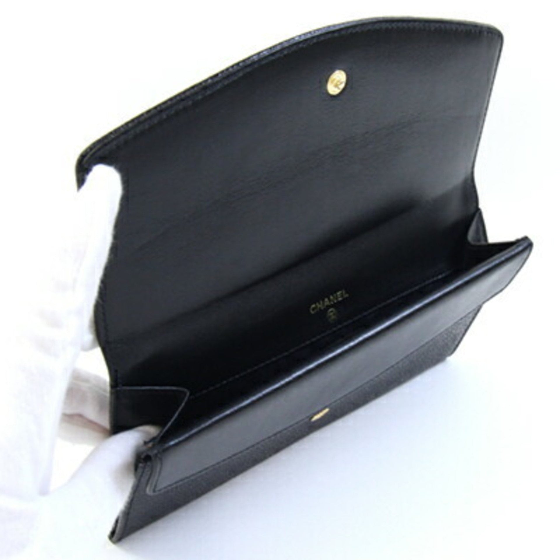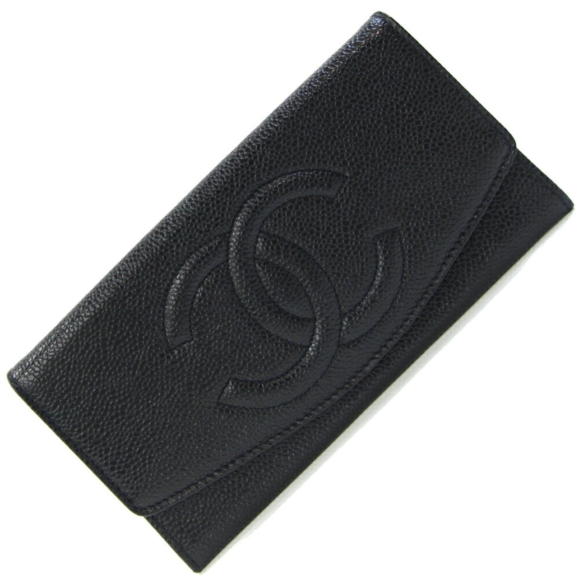 Chanel bi-fold long wallet with Coco mark, black caviar leather, old ladies\', deca-coco CHANEL