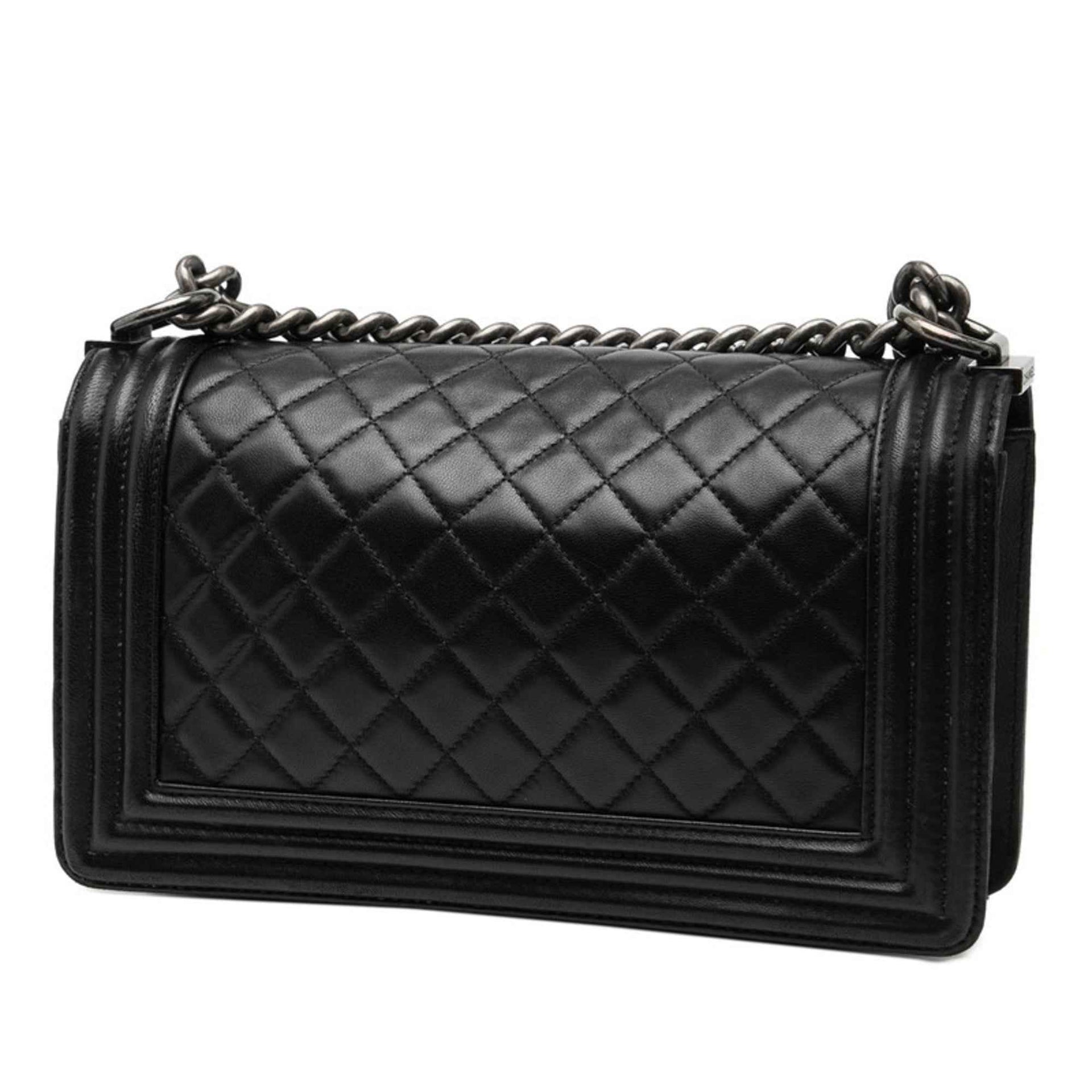 CHANEL Boy Chanel 25 Chain Shoulder Bag in Black Lambskin for Women