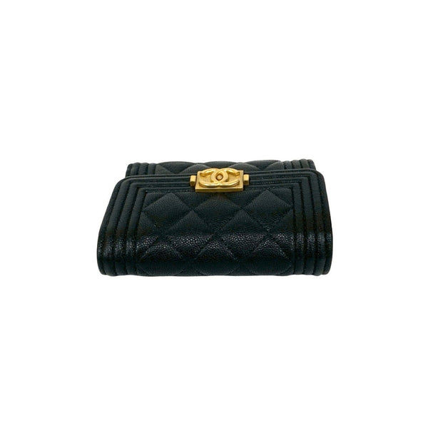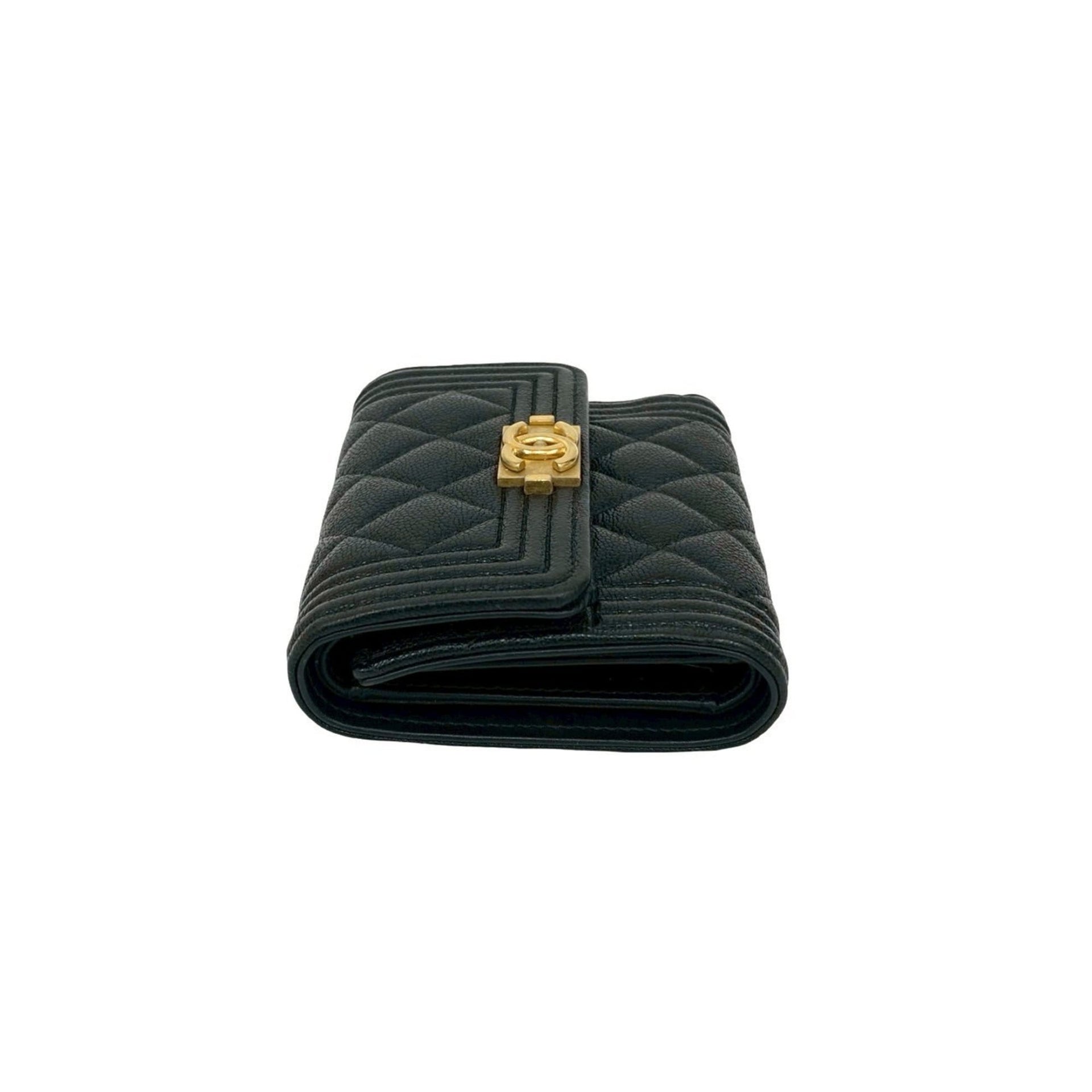 CHANEL Boy Chanel Coco Mark Caviar Leather Tri-fold Wallet, Black, 41144