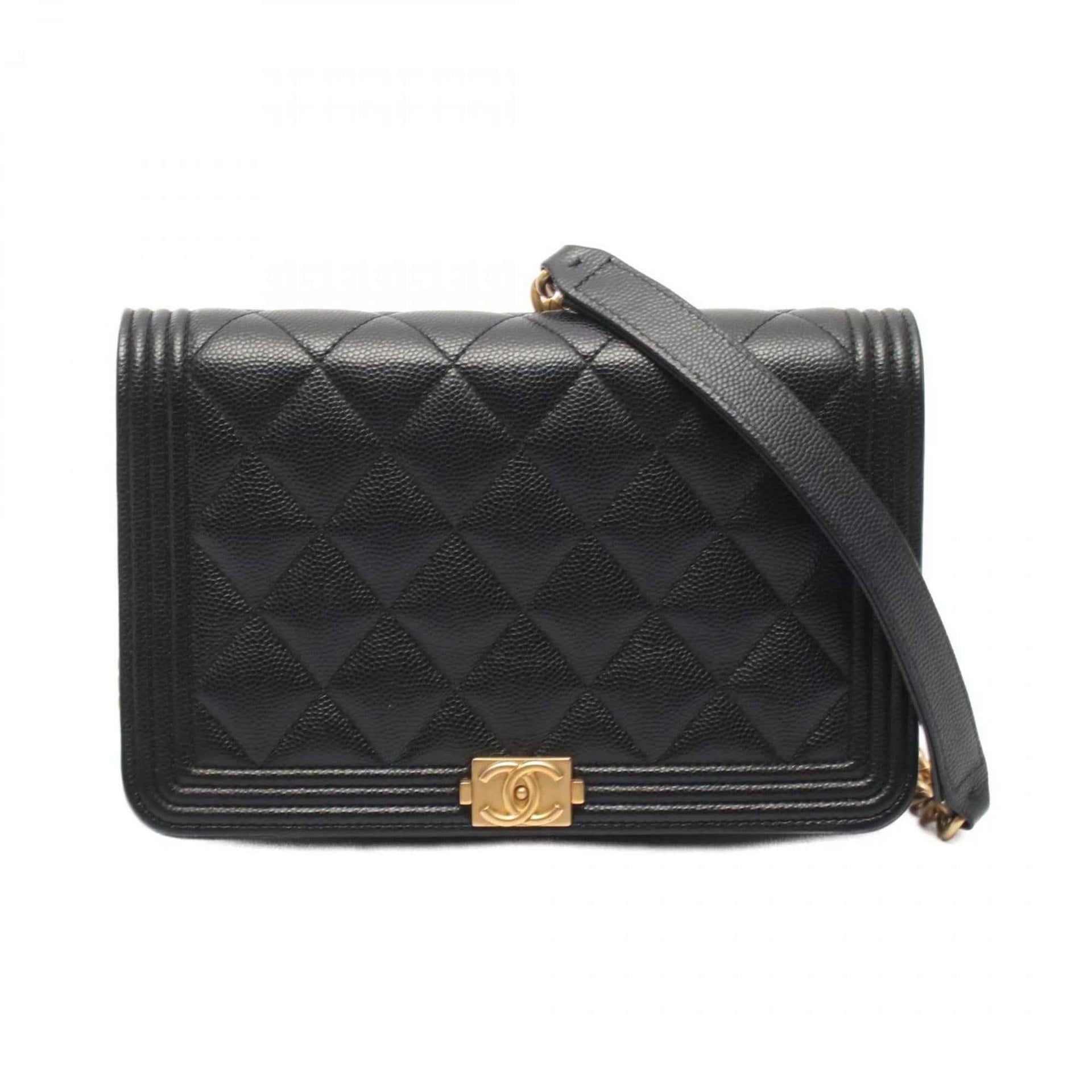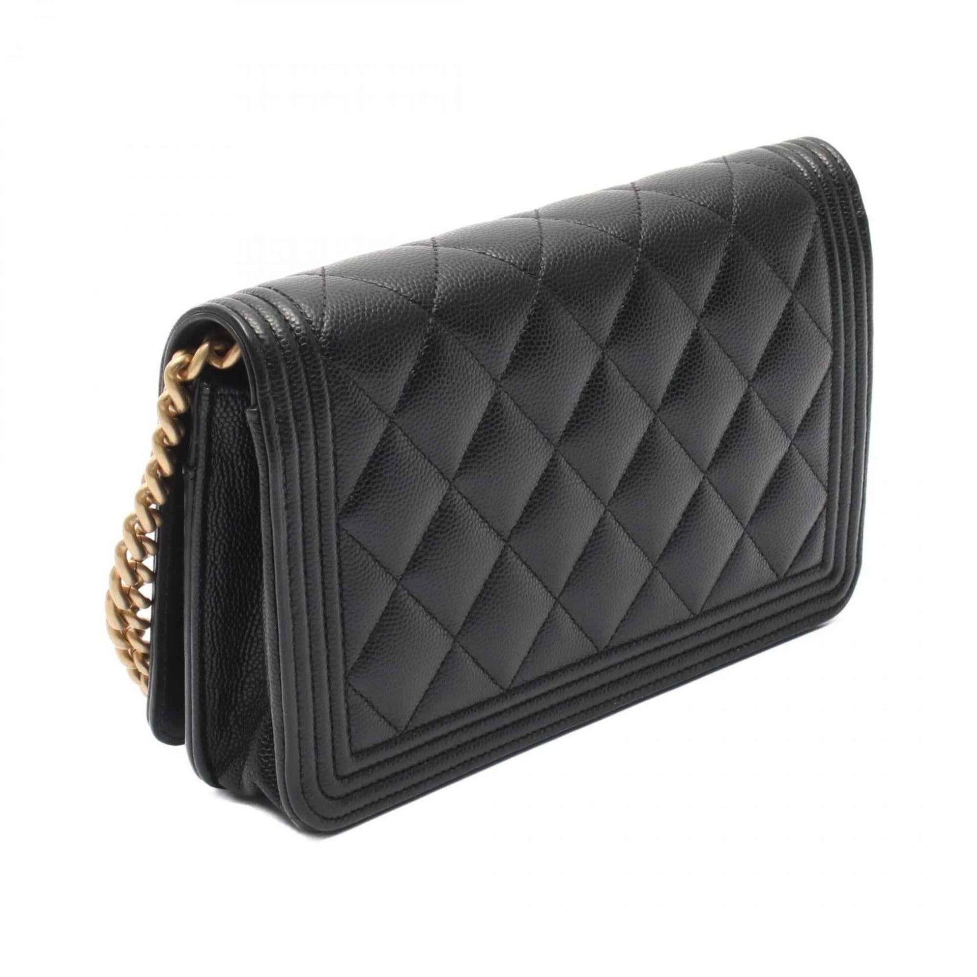 CHANEL Boy Chanel Matelasse Shoulder Bag in Grained Calfskin Leather, Black