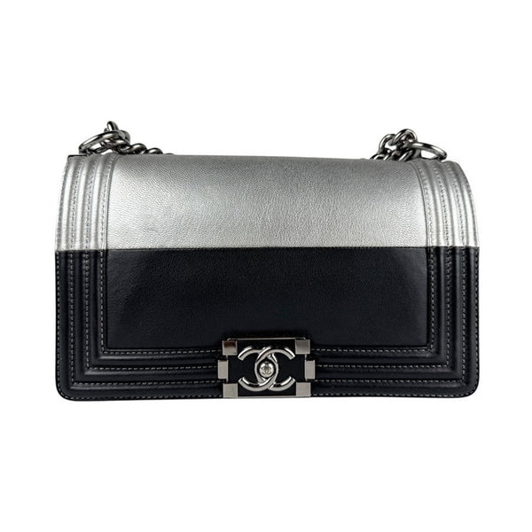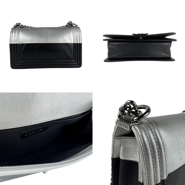 CHANEL Boy Chanel Shoulder Bag, Leather, Black and Silver, Women\'s, Z6339