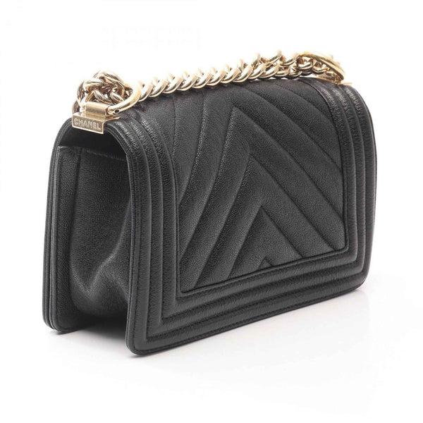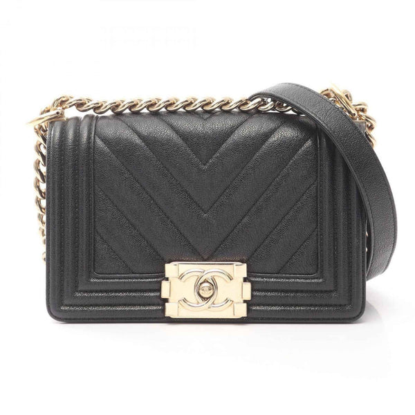 CHANEL Boy Chanel Small Shoulder Bag in Grained Calfskin Leather, Black, Women\'s, A67085