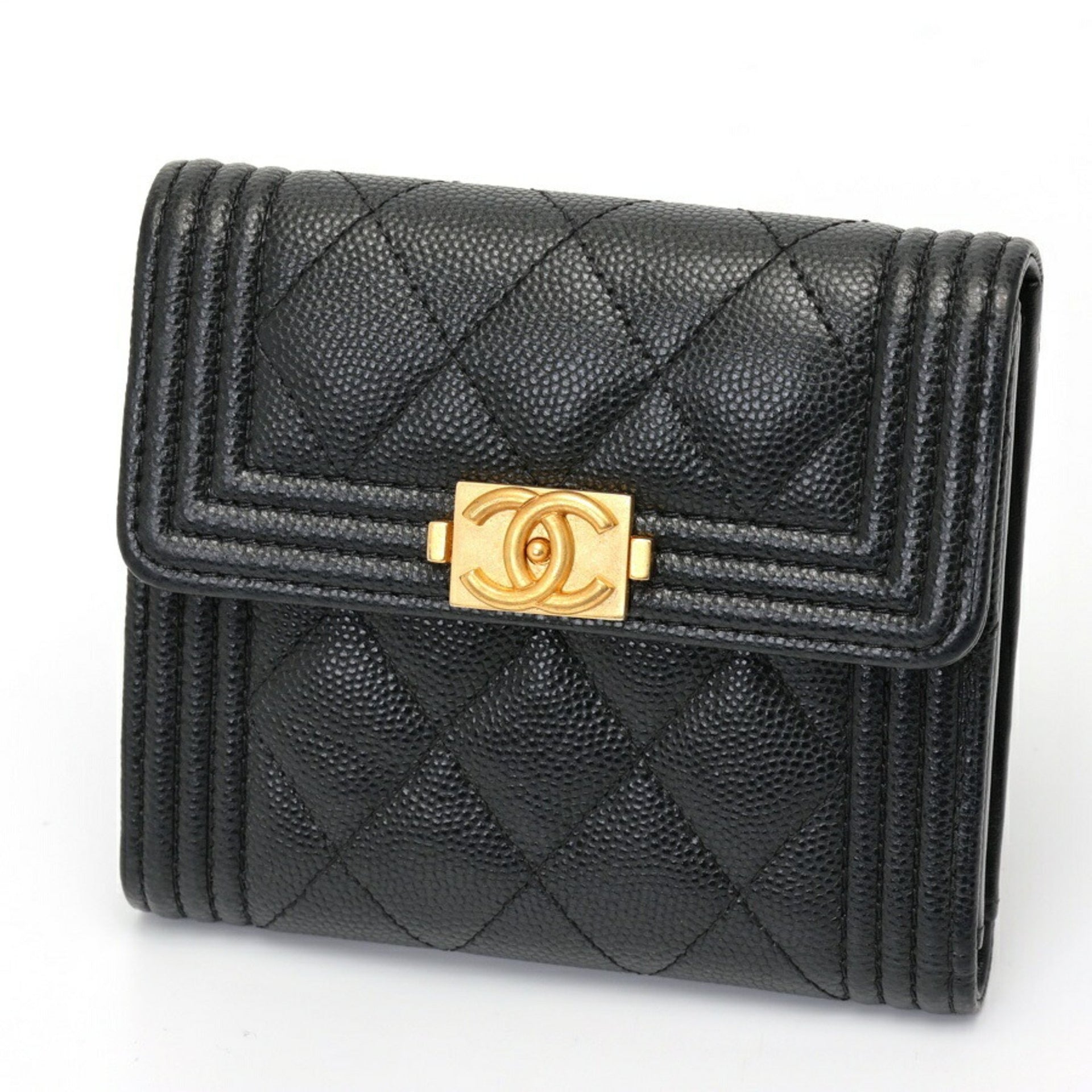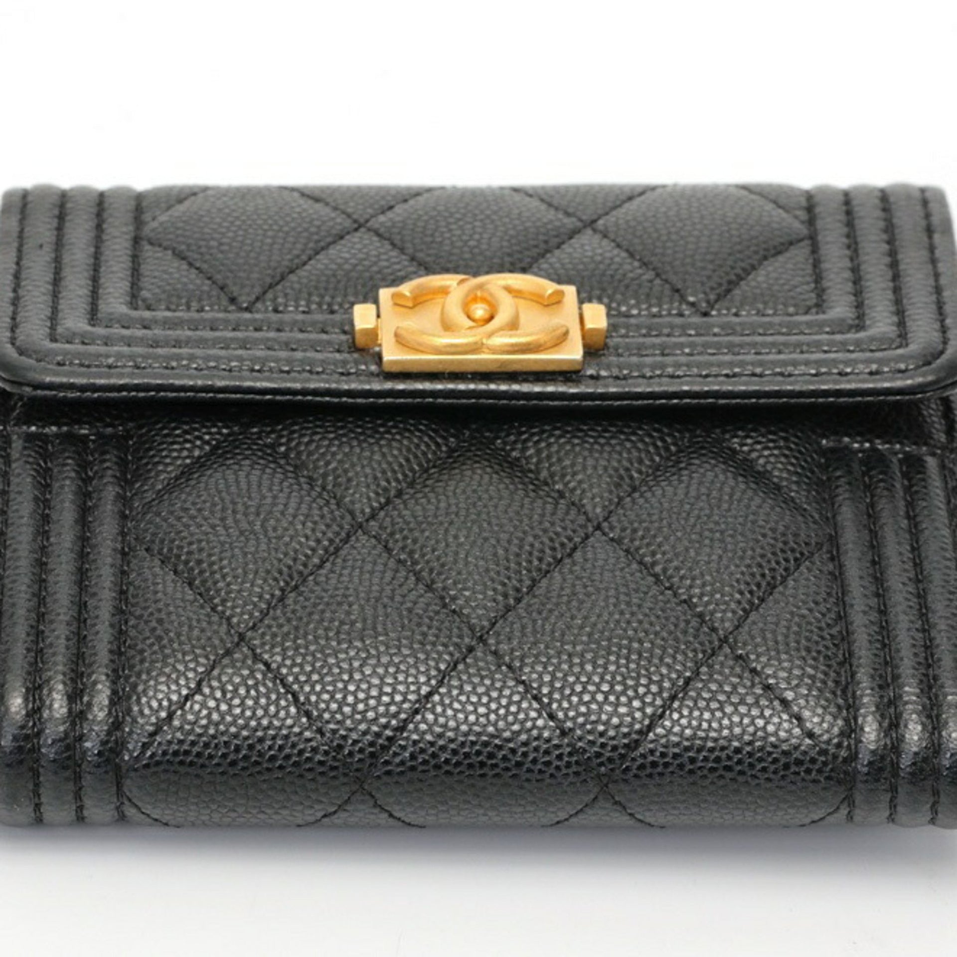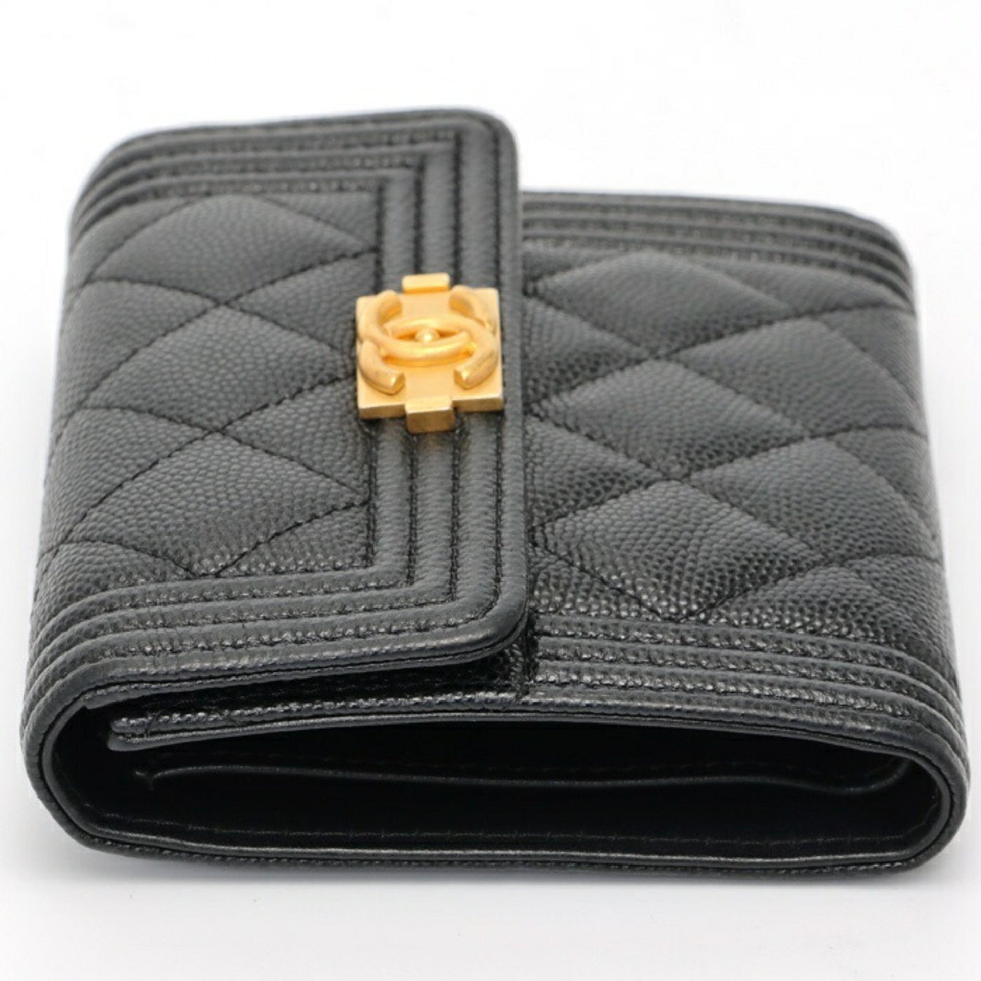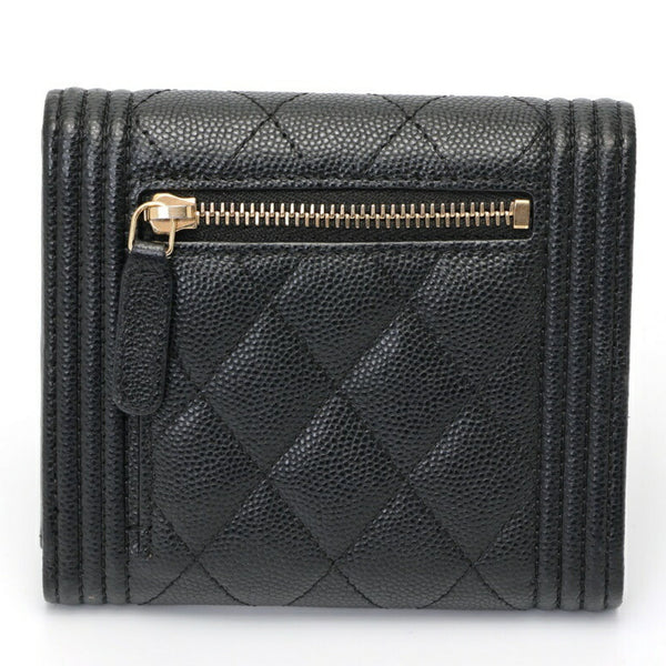 CHANEL Boy Chanel Tri-fold Wallet Compact A80743 Caviar Skin Black S-157722