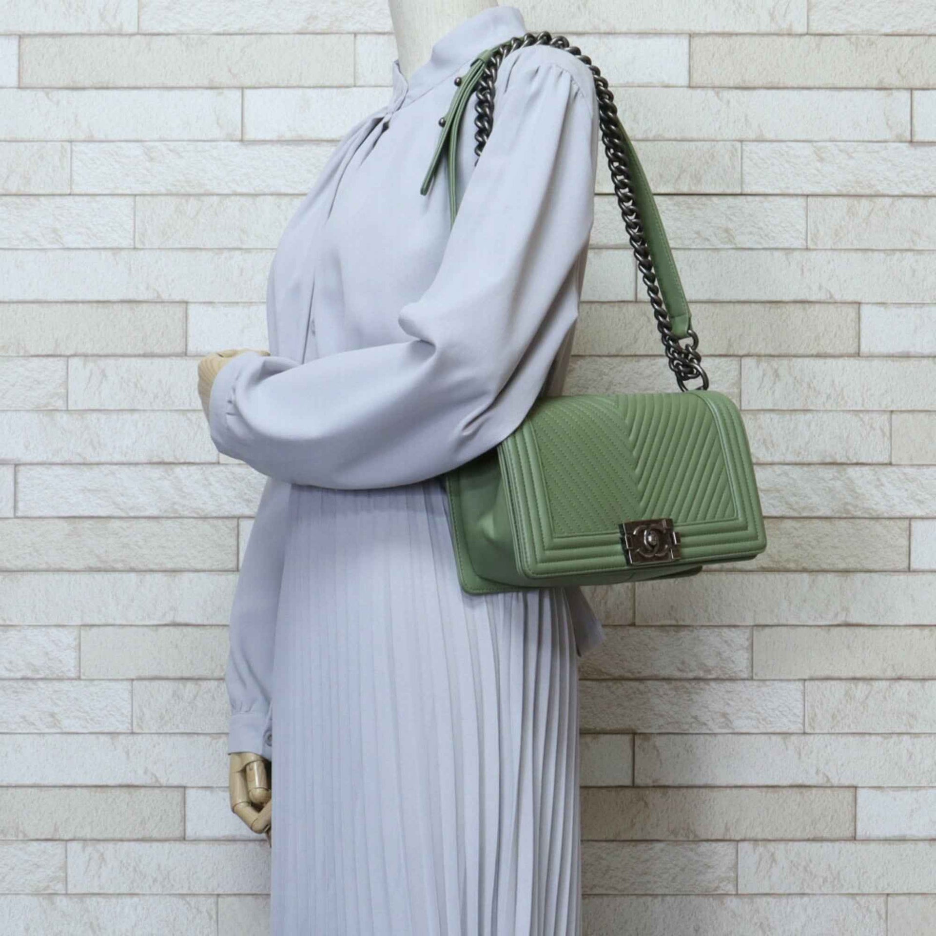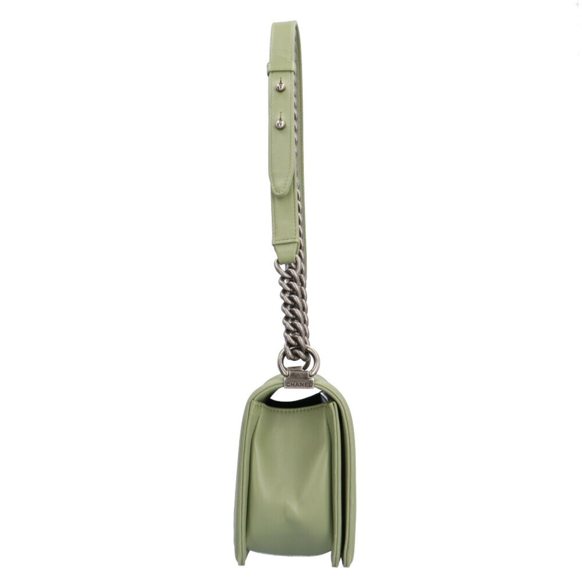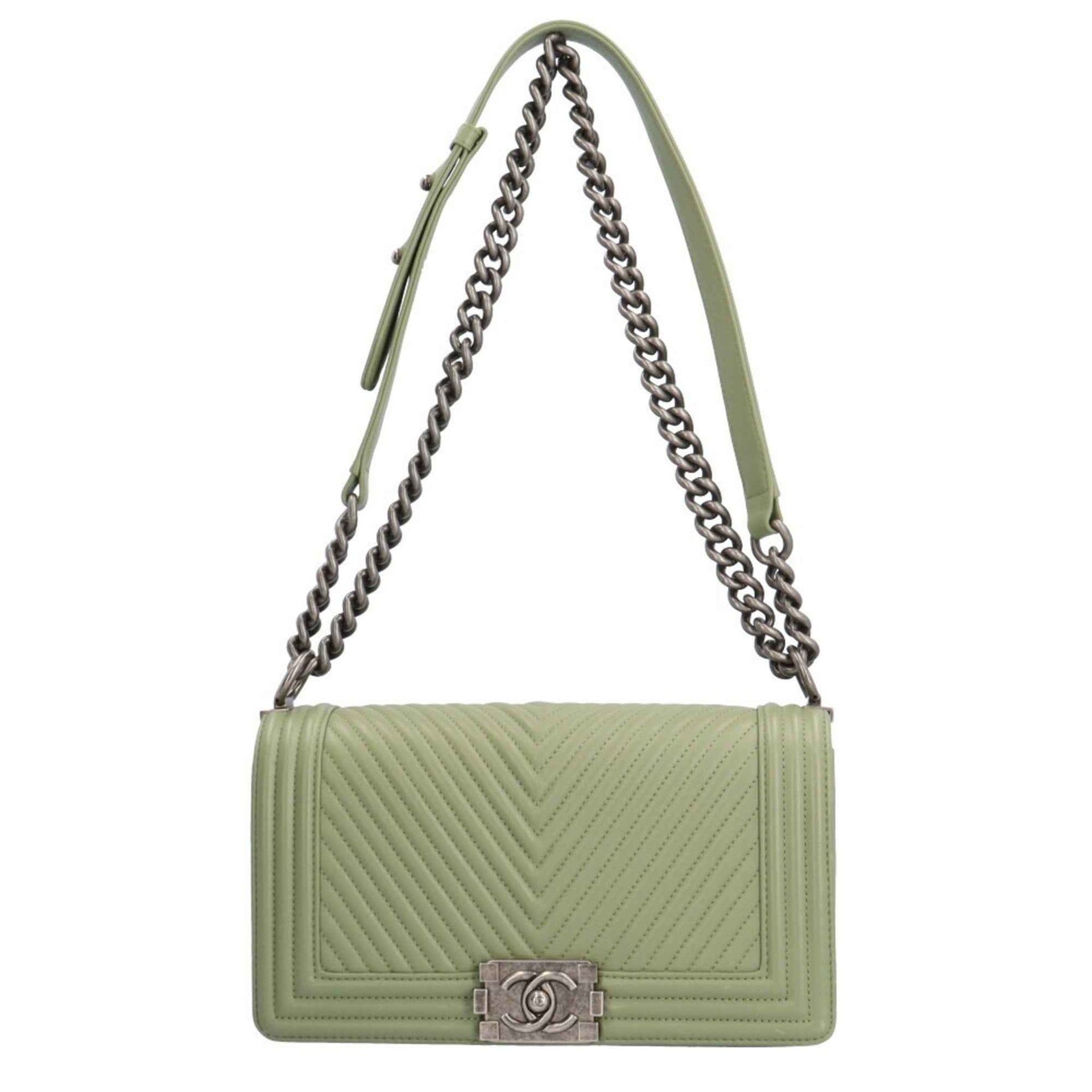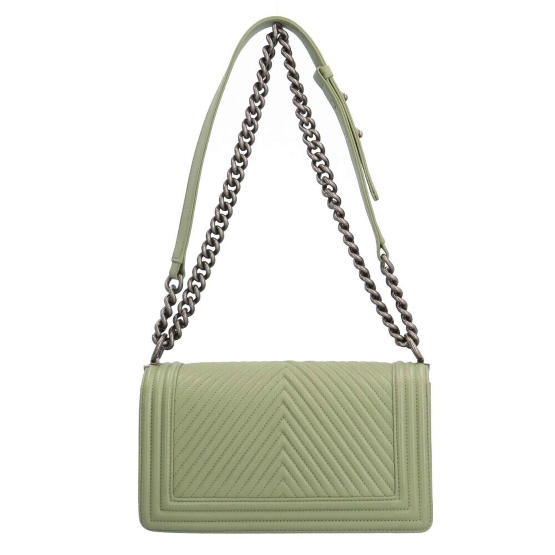 CHANEL Boy Chanel V Stitch Shoulder Bag Lambskin Green Women\'s