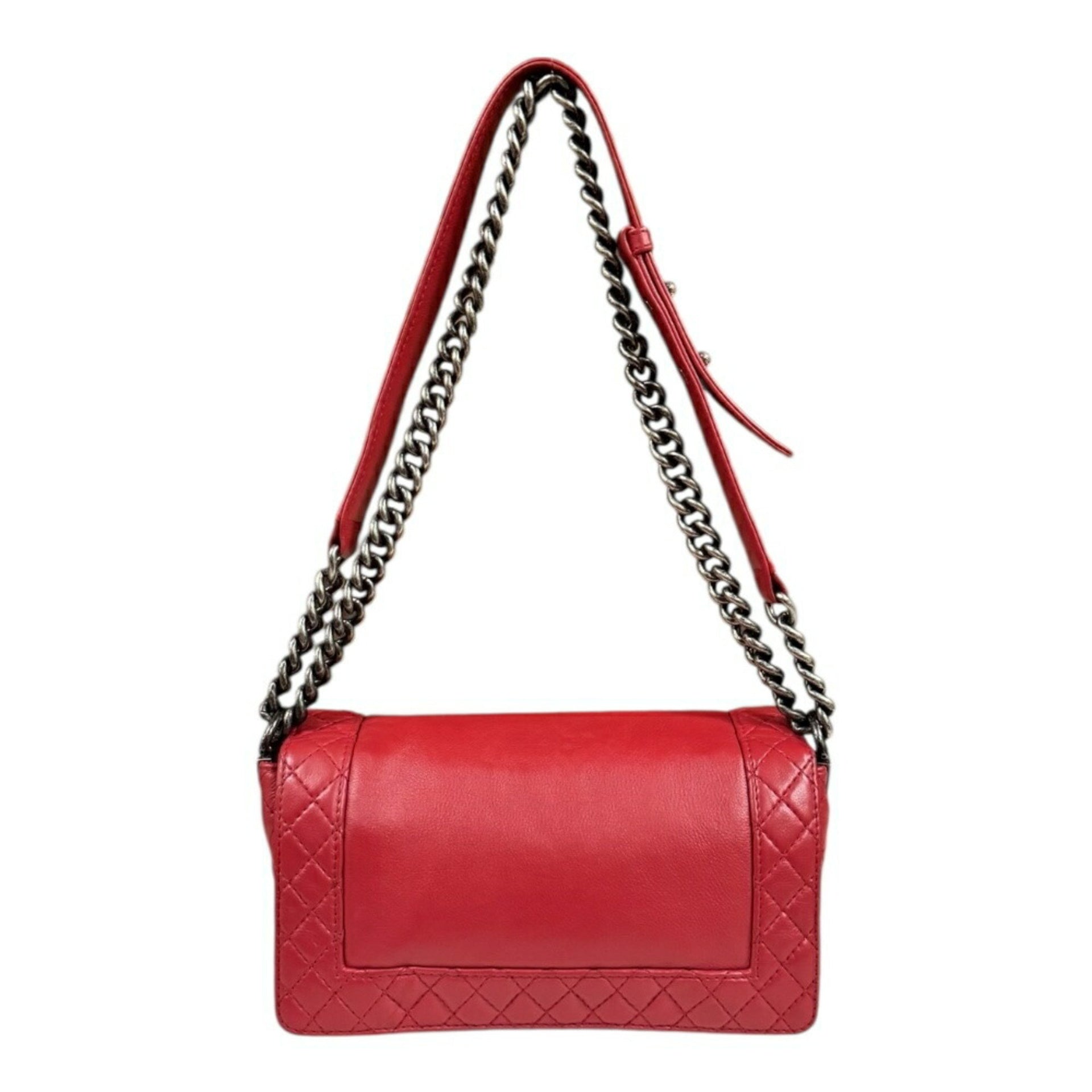 CHANEL BOY Shoulder Bag Leather Red Women\'s W Chain