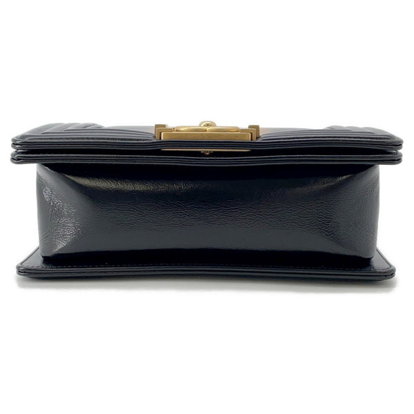 Chanel Boy Small Chain Shoulder Bag, Leather with Coco Mark Line, A67085, Black