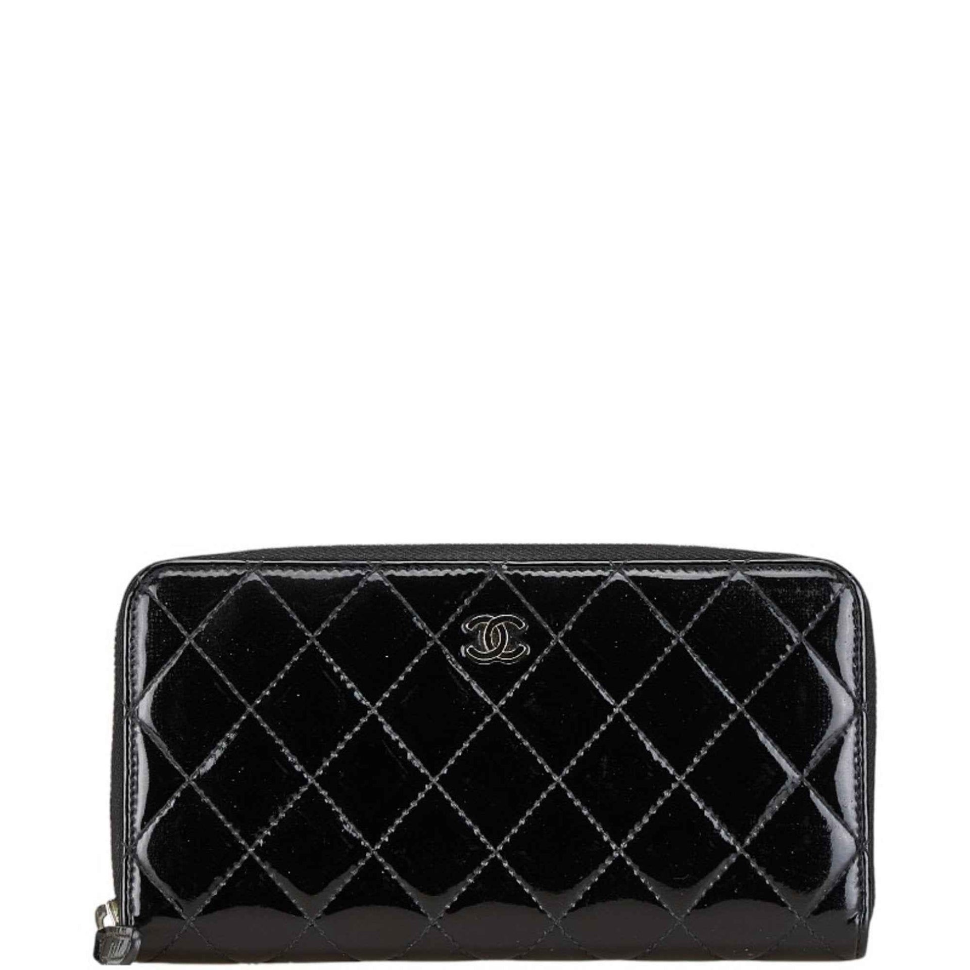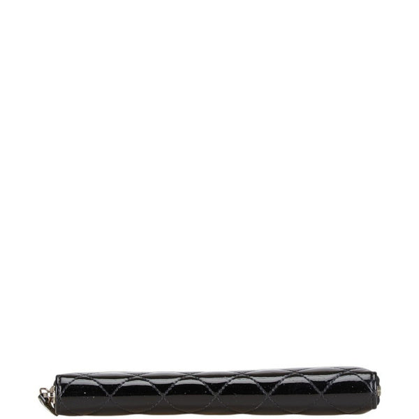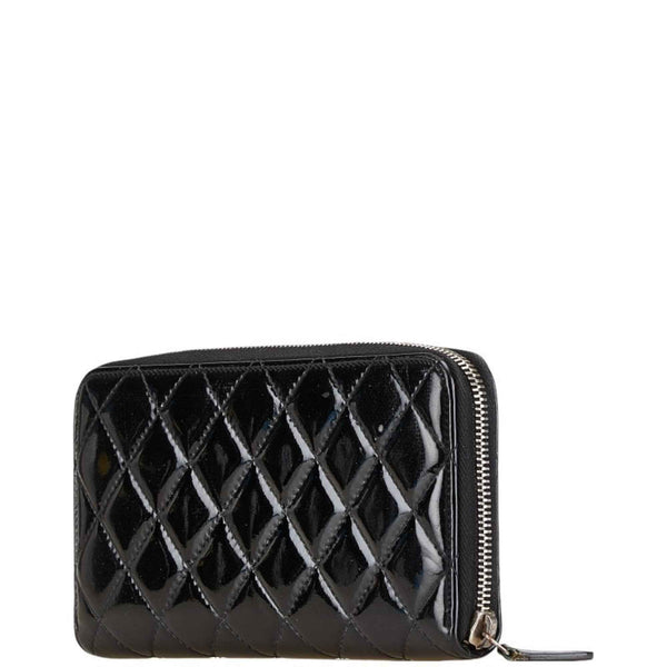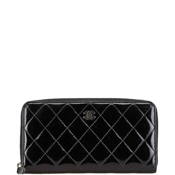 CHANEL Brilliant Matelasse Coco Mark Round Zipper Long Wallet Black Enamel Women\'s