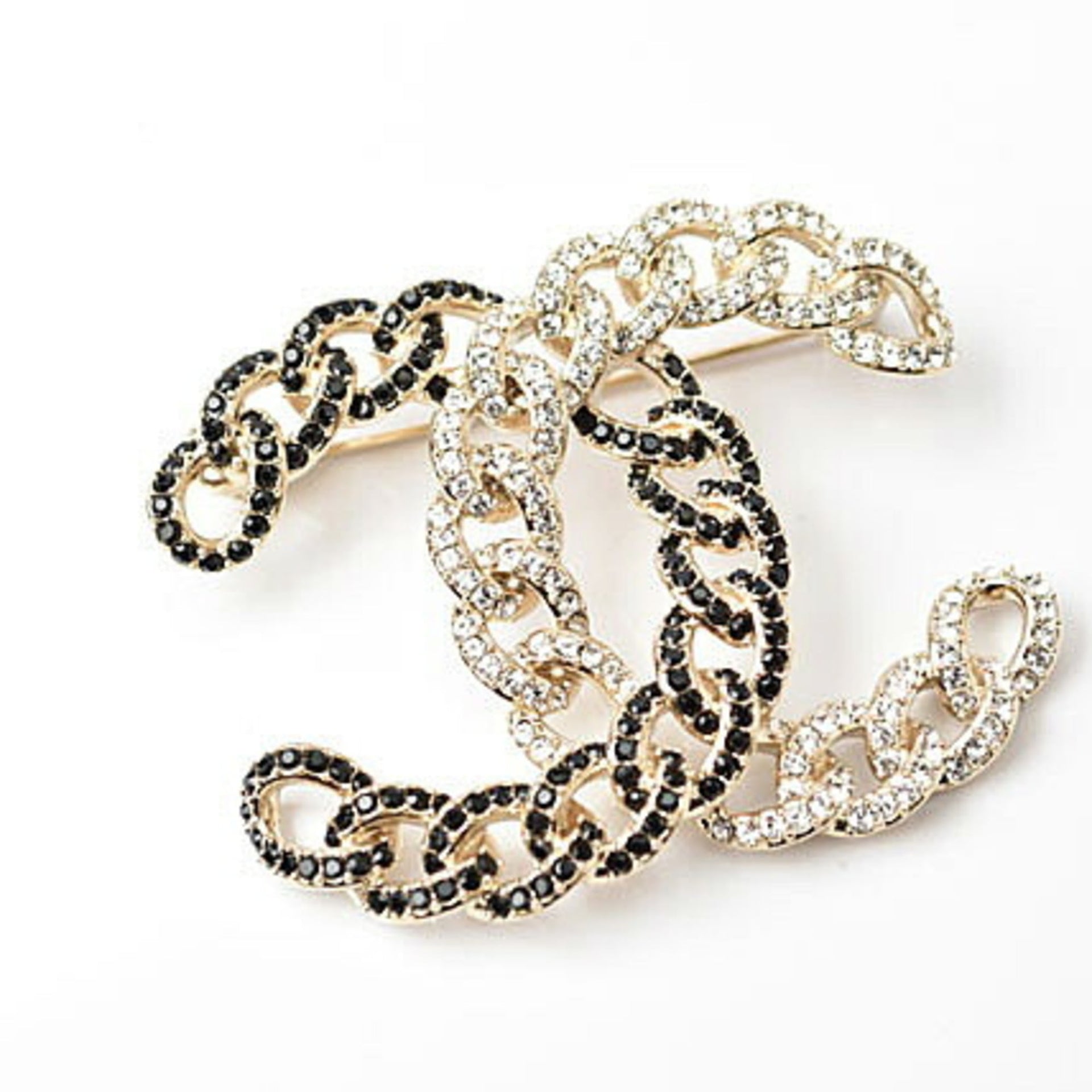 CHANEL Brooch Pin Coco Mark Rhinestone Gold Black