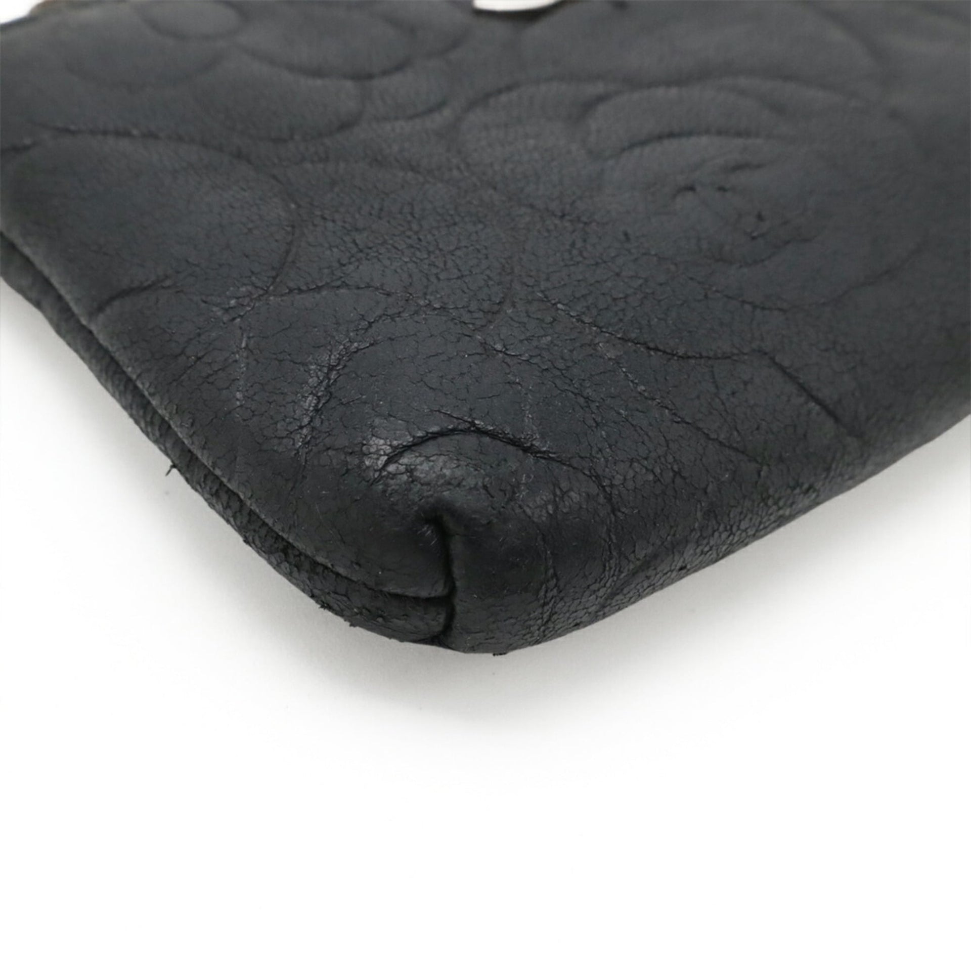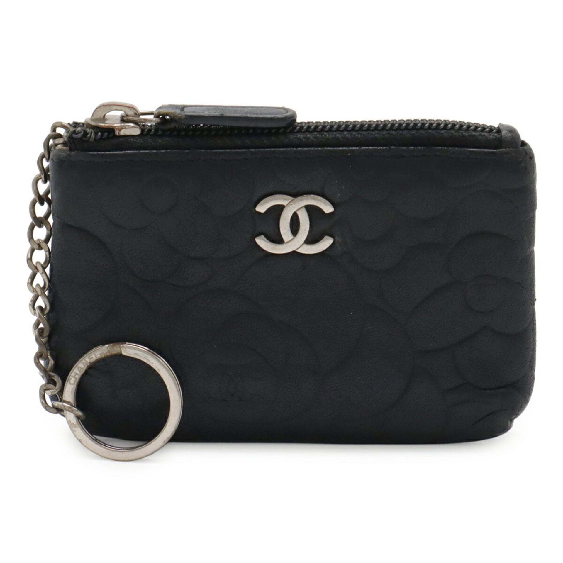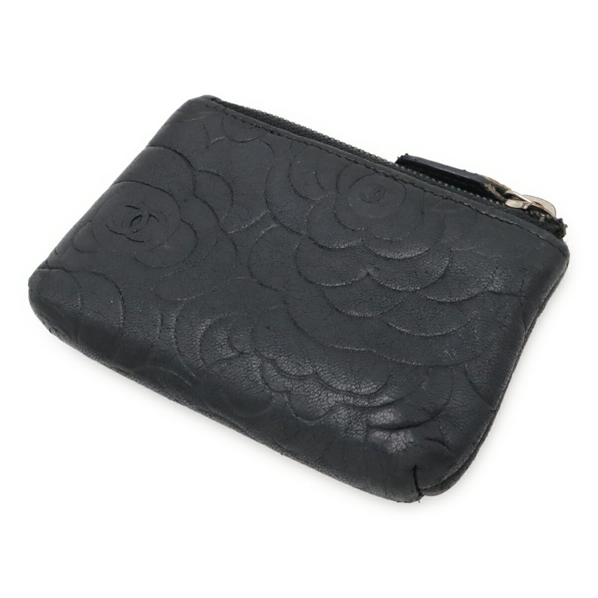 CHANEL Camellia Coco Mark Coin Case Wallet Purse Lambskin Leather Black