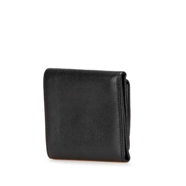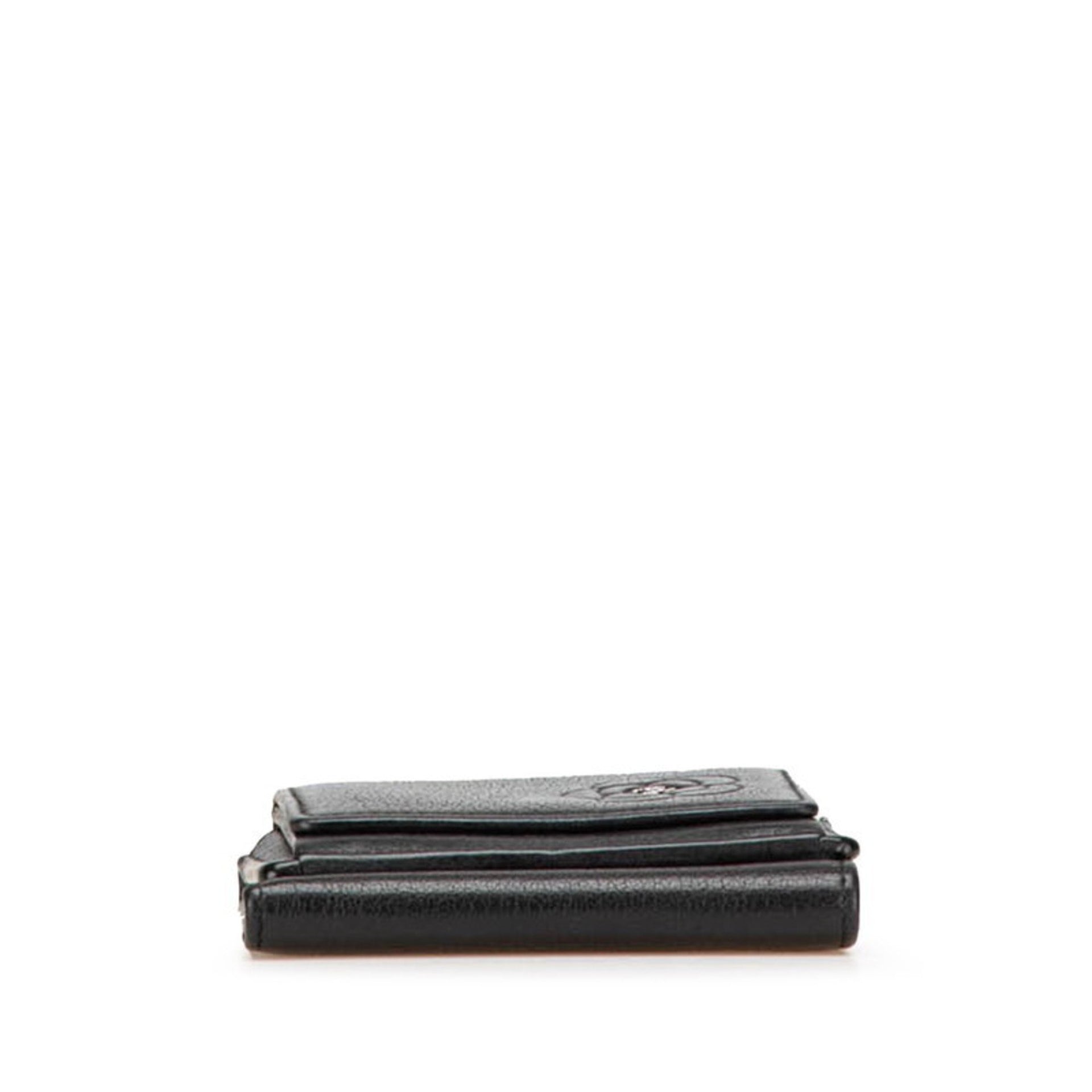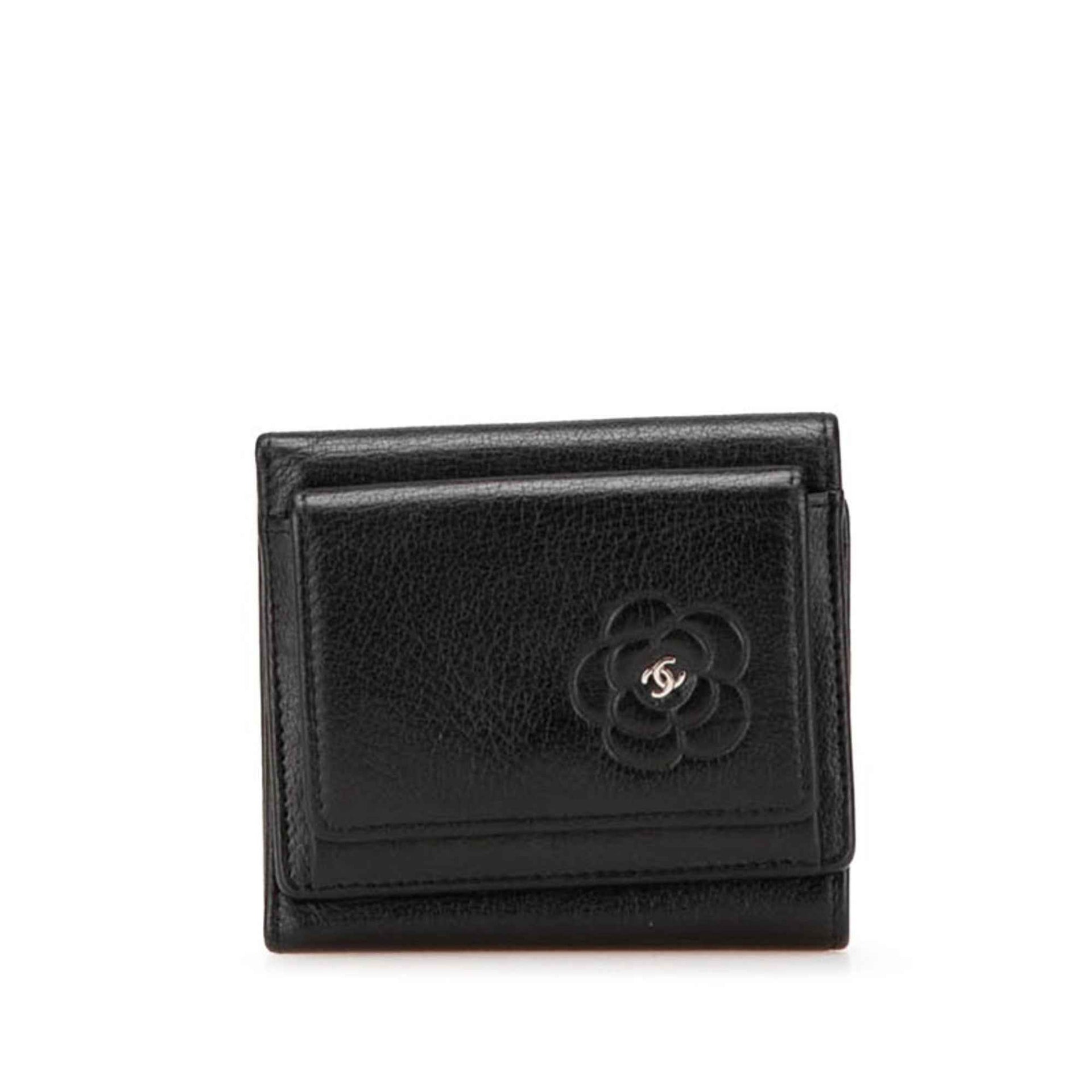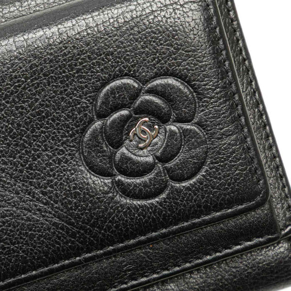 CHANEL Camellia Coco Mark Tri-fold Wallet Compact Black Lambskin Women\'s