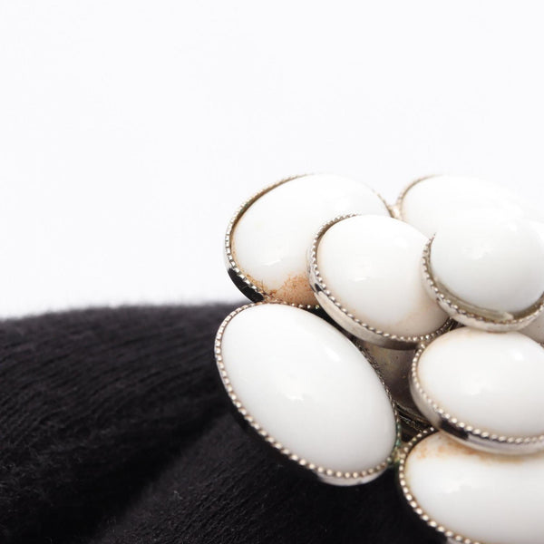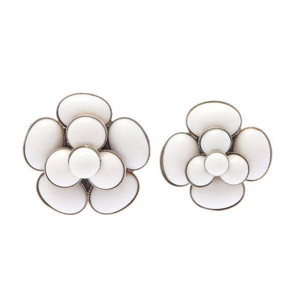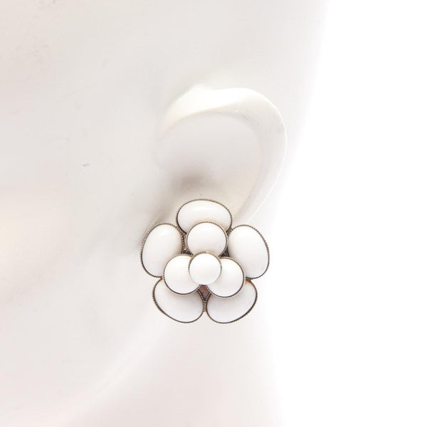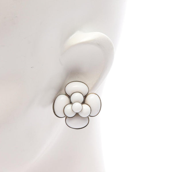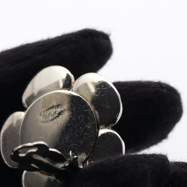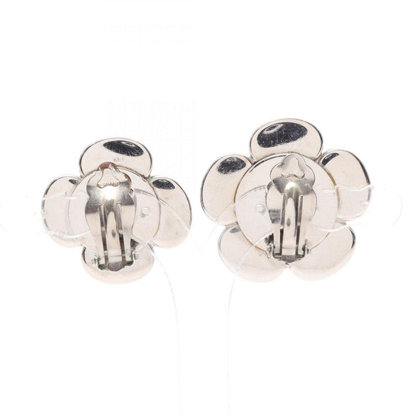 CHANEL Camellia Earrings, Stainless Steel, Women\'s, White/Silver