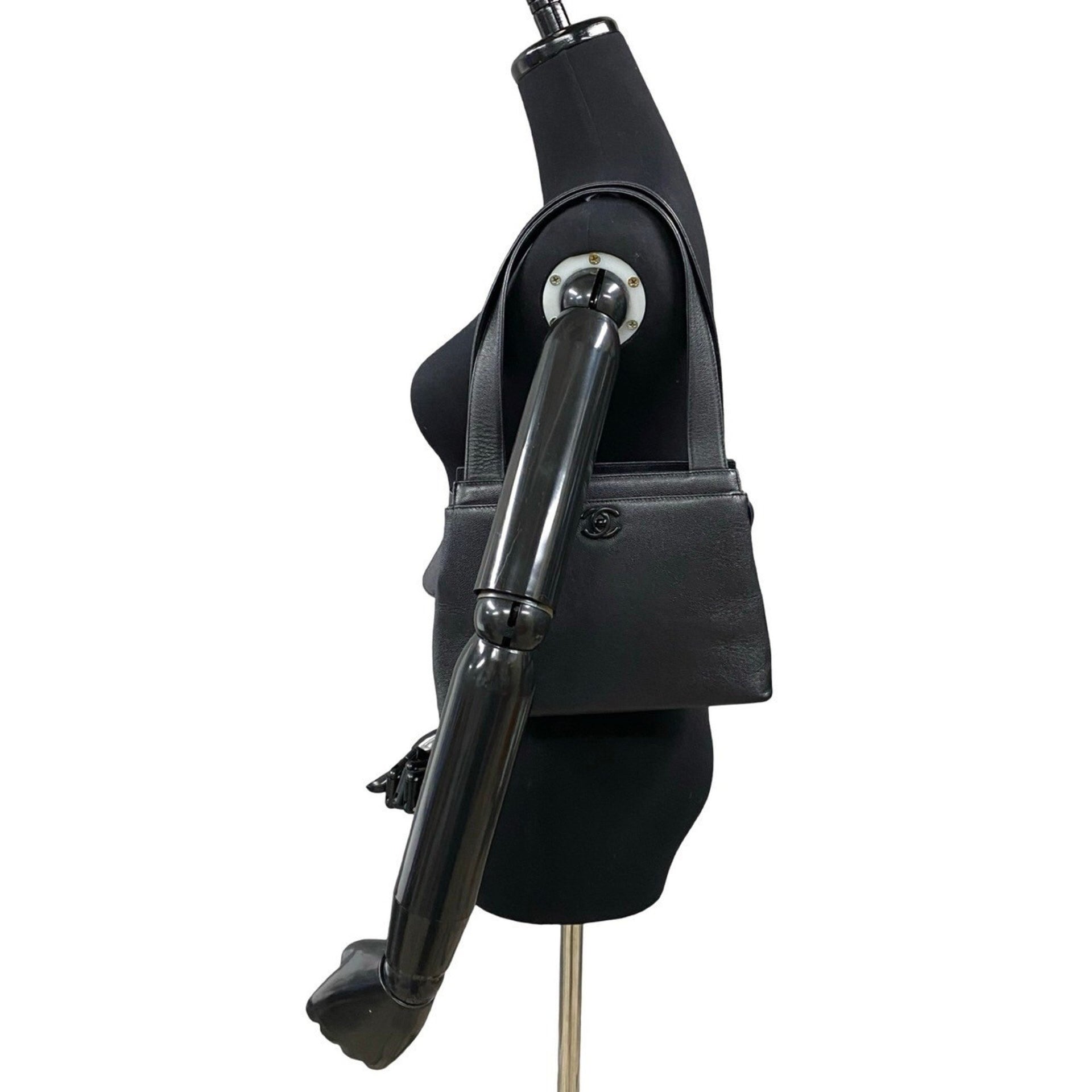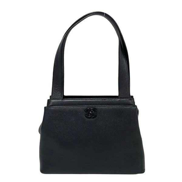 CHANEL Caviar Skin Coco Mark Turnlock Handbag Mini Tote Bag Black mnf83-5