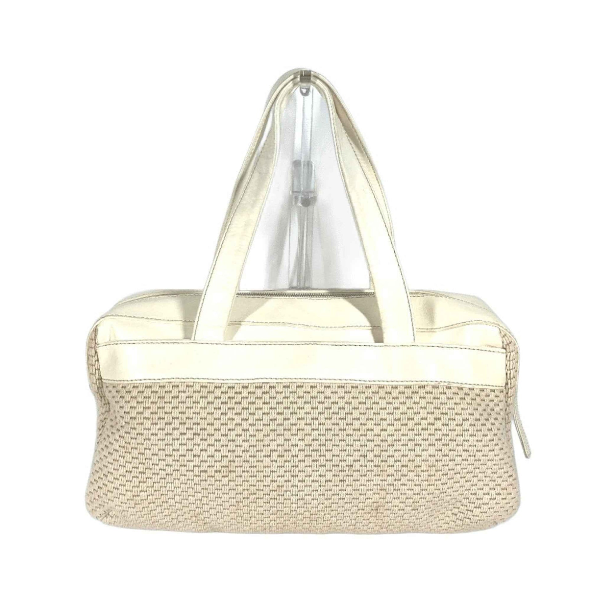 CHANEL CC Coco Mark Logo Tote Bag Shoulder Handbag Leather Canvas Women\'s Beige