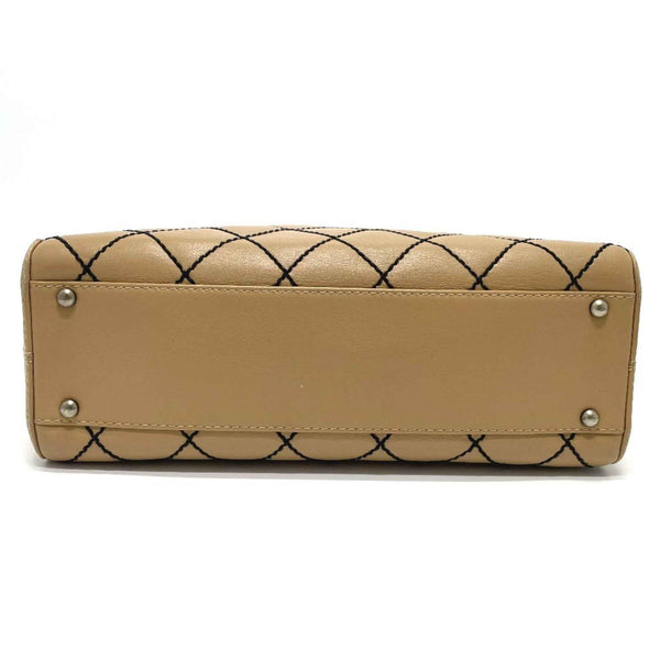 CHANEL CC Coco Mark Wild Stitch Vintage Tote Bag Handbag Lambskin Women\'s Beige