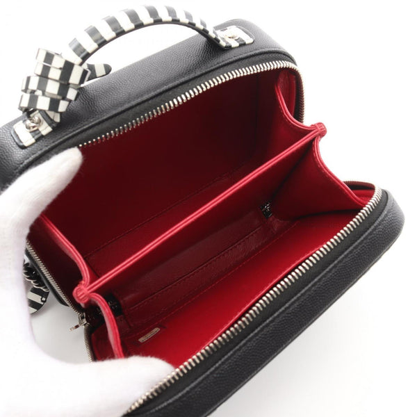 CHANEL CC Filigree Small Vanity Bag Shoulder Leather Grained Calfskin Women\'s Black White A93342