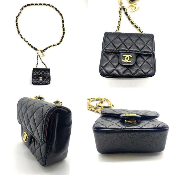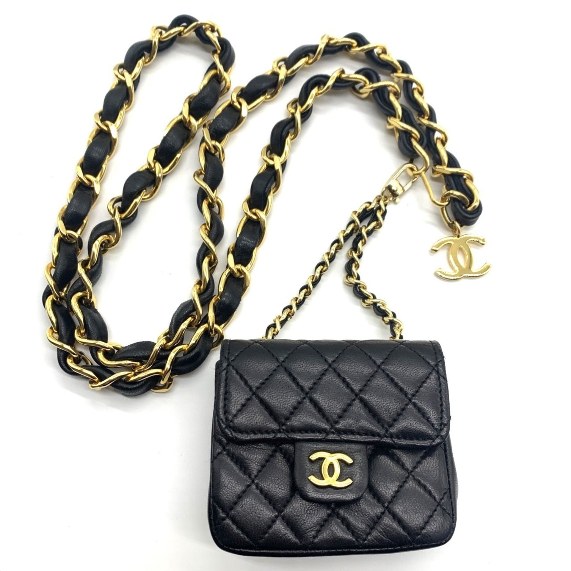 CHANEL Chain Belt & Mini Matelasse Waistband in Black Lambskin
