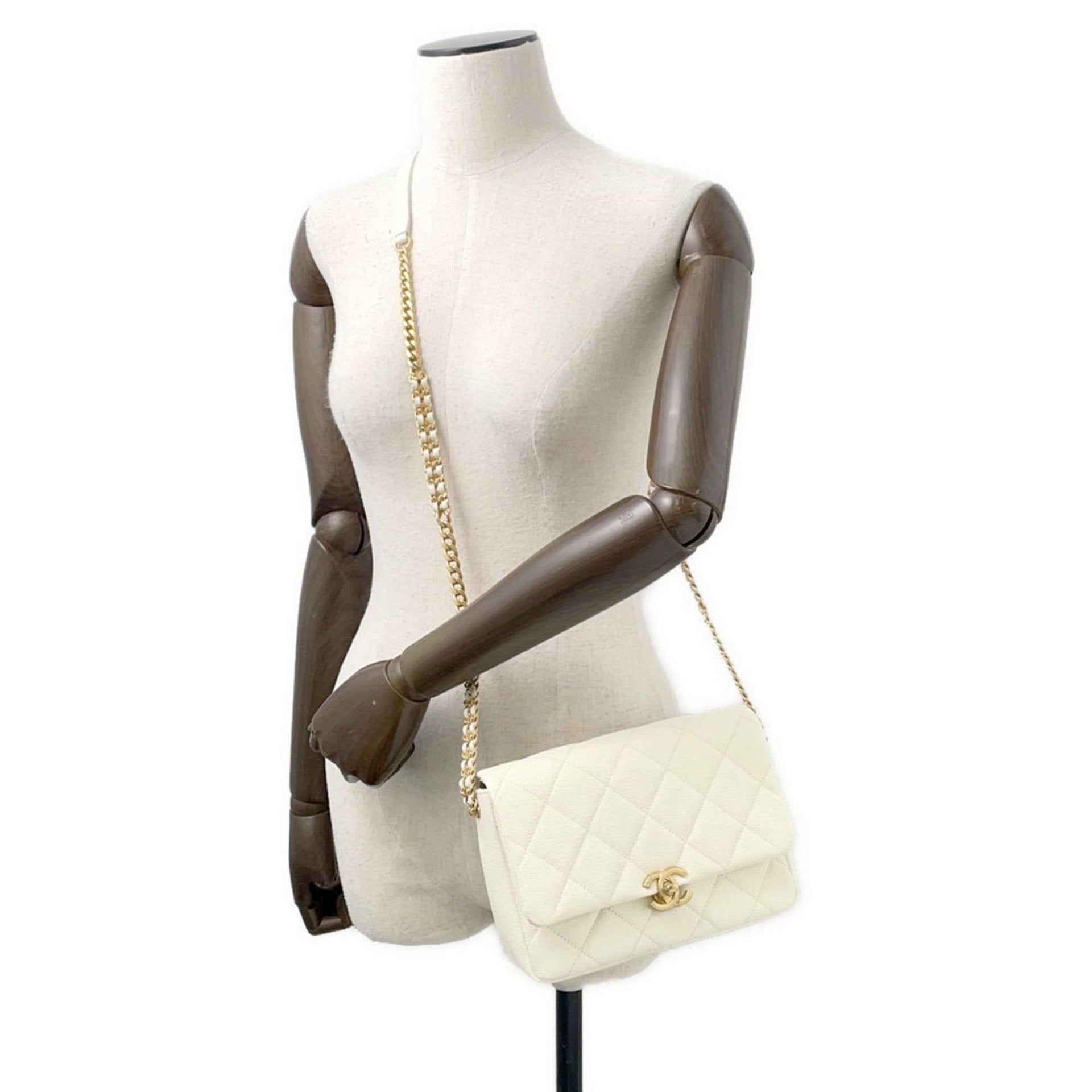 Chanel chain shoulder bag, Matelasse, Coco Mark, caviar skin, white