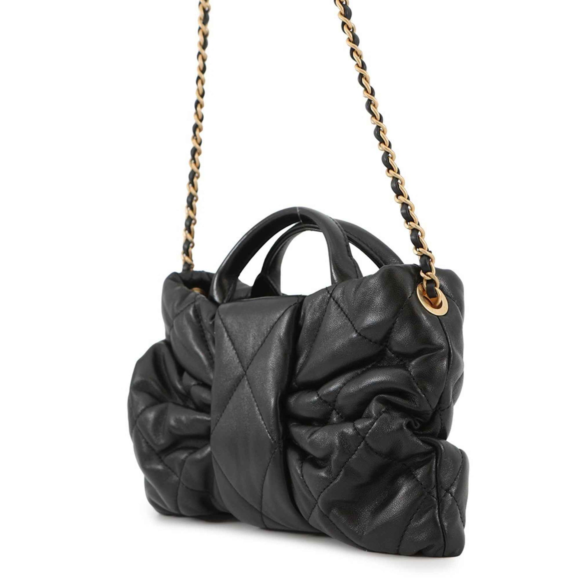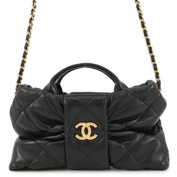 CHANEL Chain Shoulder Bag Matelasse Coco Mark Mini Bow Shiny Lambskin AS5849 2-Way