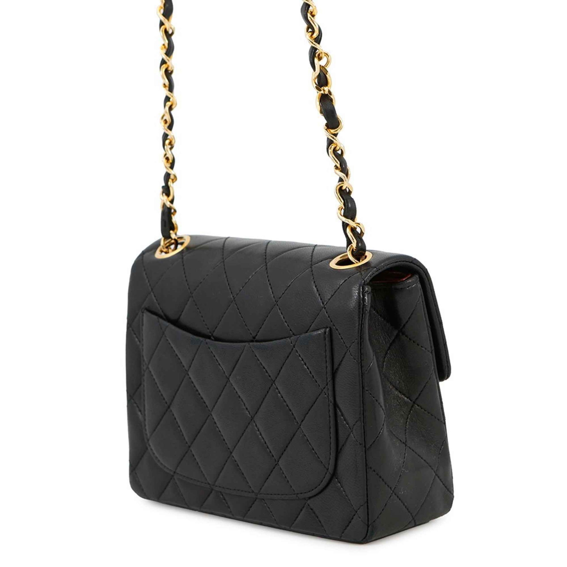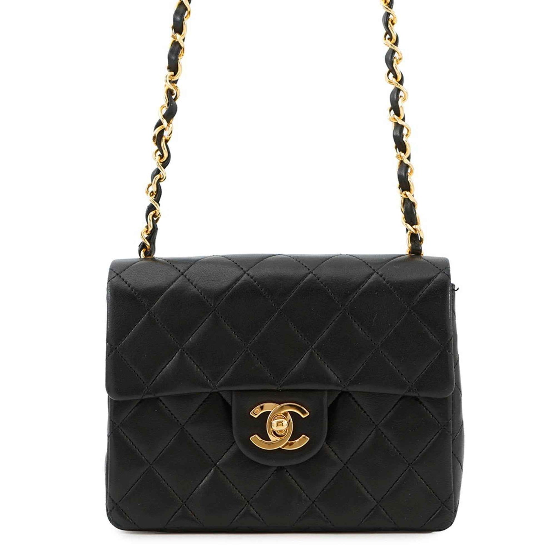 Chanel Chain Shoulder Bag Mini Matelasse Coco Mark Single Lambskin A01115 CHANEL Black