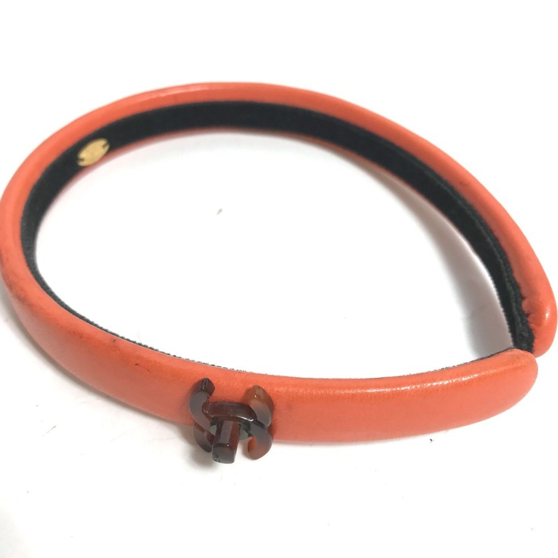 CHANEL Chanel Headband, CC Coco Mark, Hair Accessory, Leather Women\'s, Orange