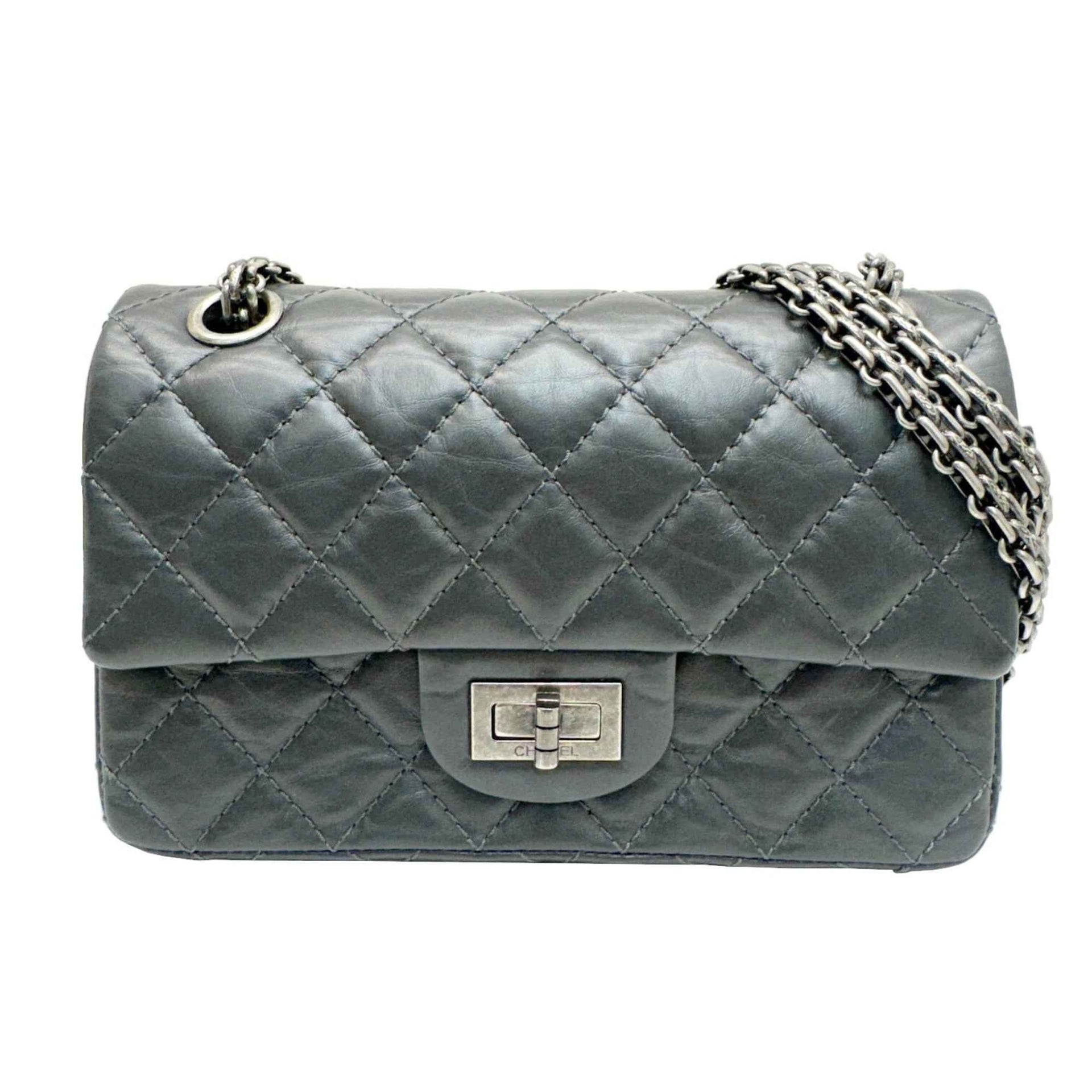 CHANEL Chanel Matelasse Chain Shoulder 2.55 20 Bag Flap Gray Dark Calfskin Women\'s 16th Series