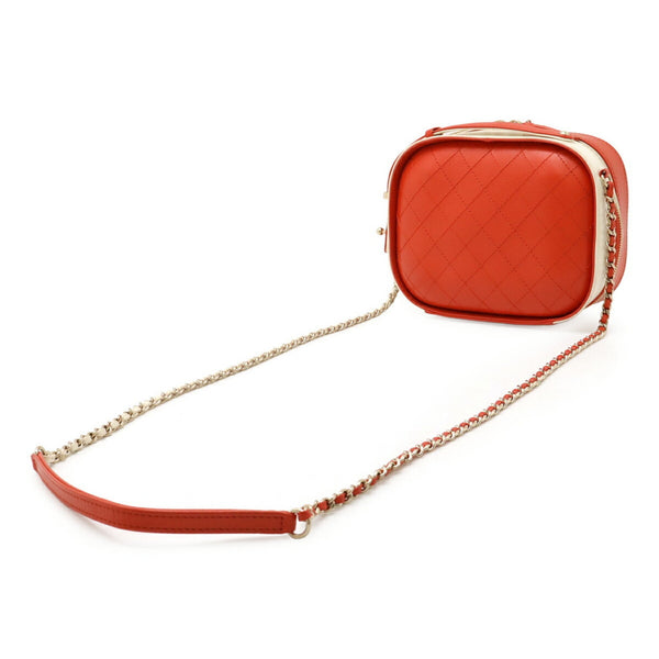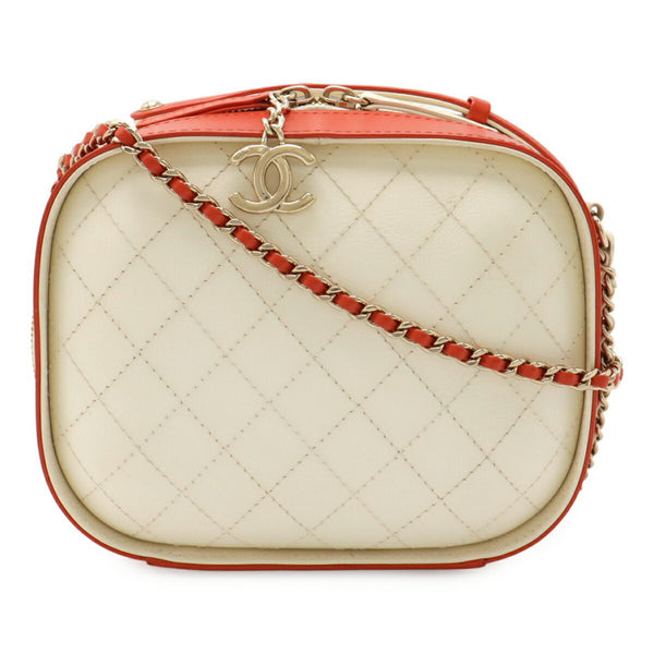 CHANEL Chanel Matelasse Vanity Case Handbag Chain Shoulder Leather White Red