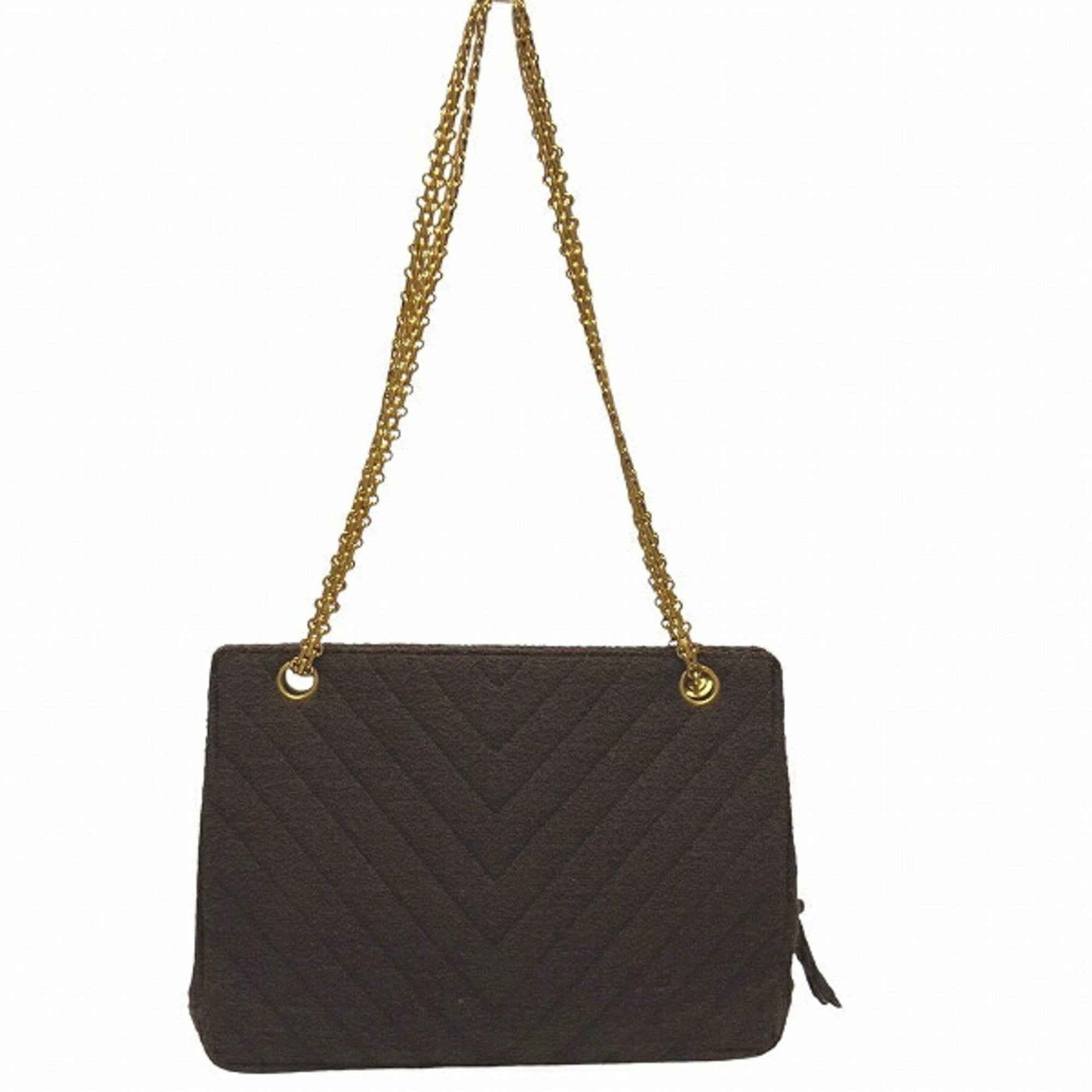 Chanel Chevron Tweed Brown Chain Shoulder Bag for Women